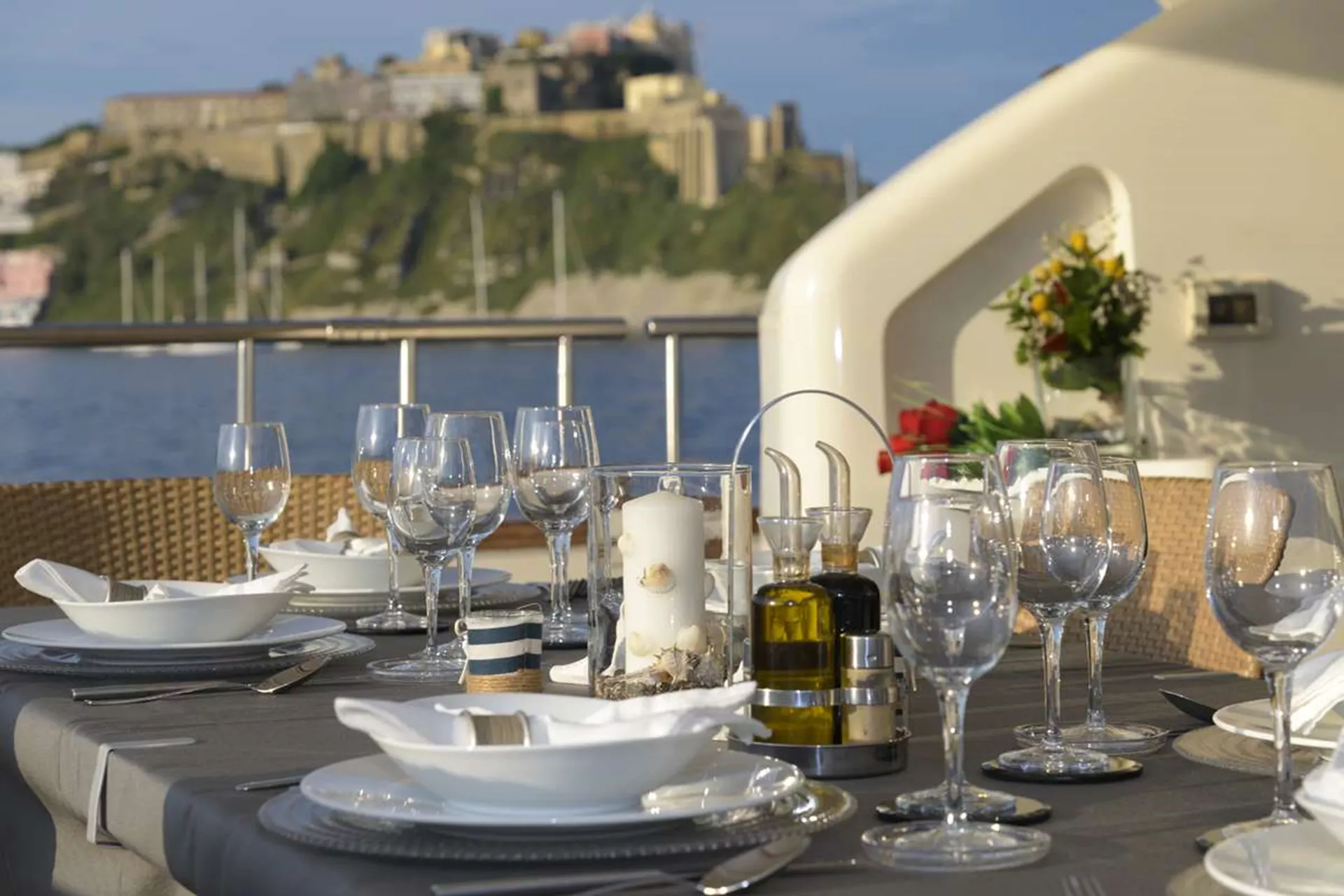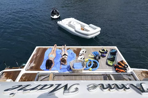 ANNE MARIE boasts 4 amazing en-suite cabins, 3 double and 1 twin-bedded with a Pullman berth, to sleep up to 10 charter guests (9 adults + 1 child). She also offers a highly professional crew of 5, who will ensure an unforgettable charter experience.