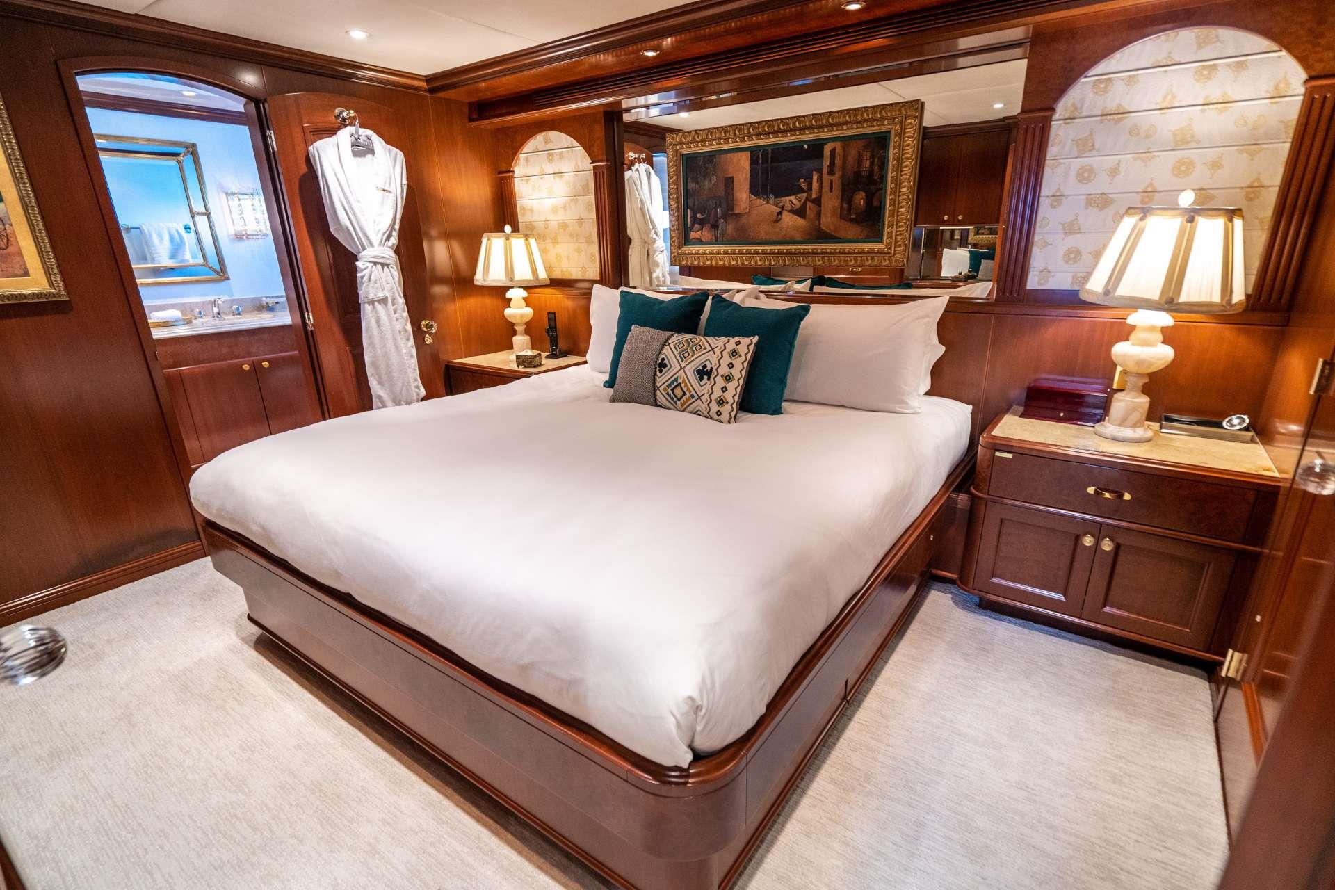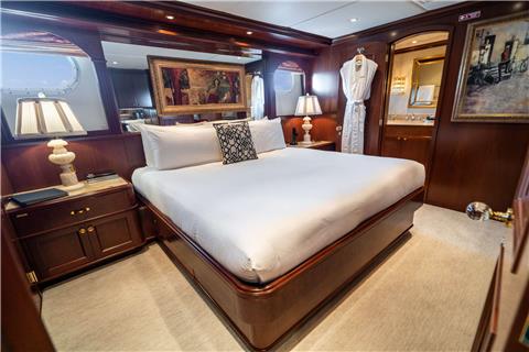 Relentless features five lavish staterooms including a king master suite located on deck with his and hers bathroom to include a large shower and Jacuzzi tub. Four additional guest staterooms are located below, which include two king staterooms, one queen and one twin, all with en-suite bathrooms, full entertainment systems and large closets for storage.