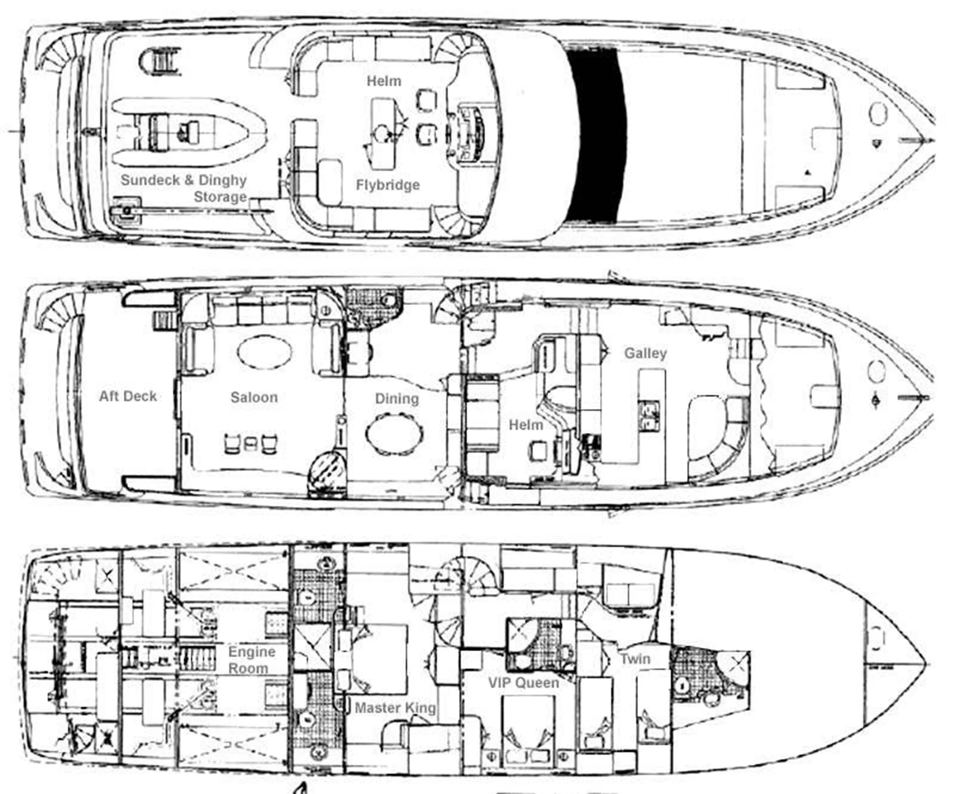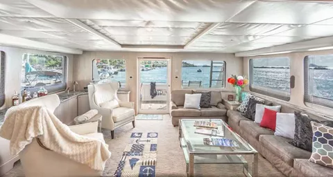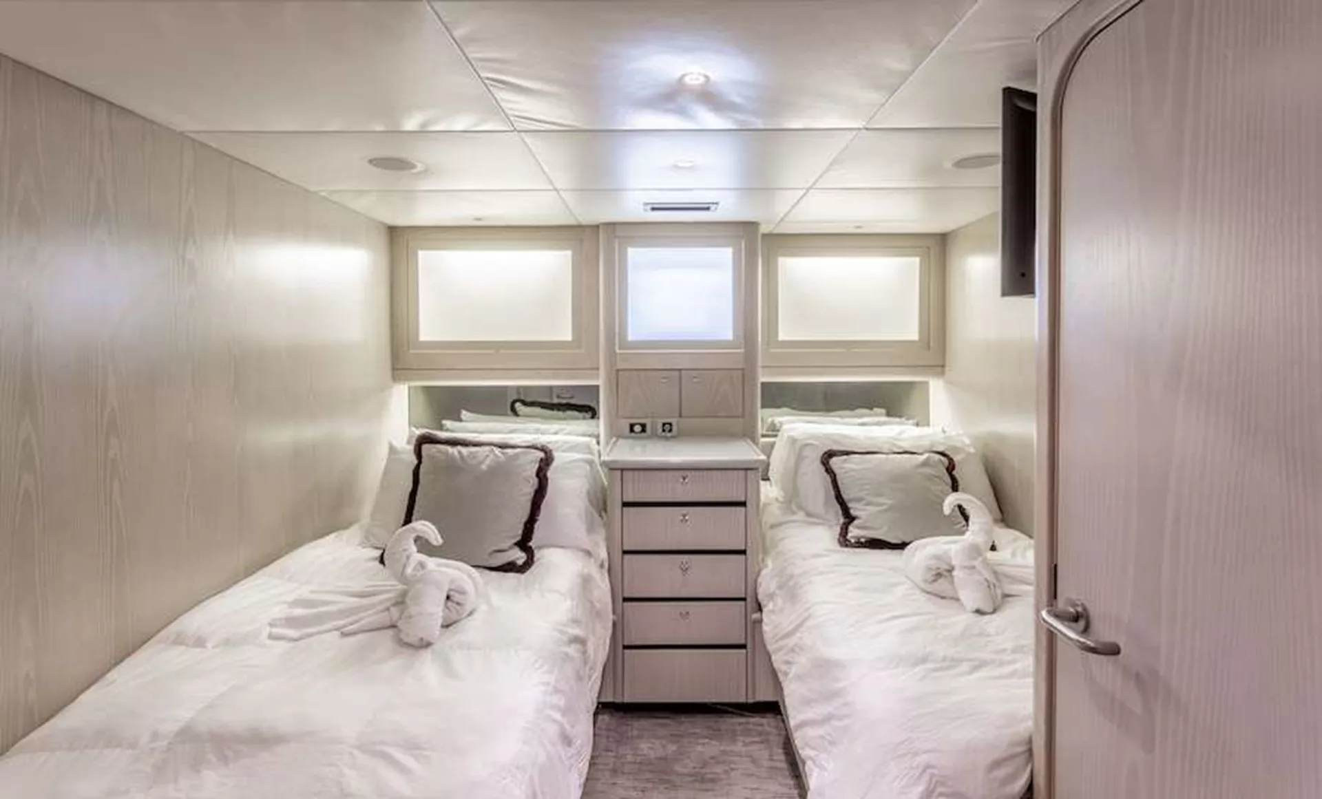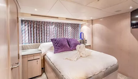 Our luxury 88-foot super yacht PRIME TIME offers accommodation for 6 guests in 4 cabins consisting of a master stateroom located on the lower deck with a king size bed and bathroom facilities including a shower and lavatory, a VIP stateroom with a queen size bed and bathroom facilities including a shower and lavatory. Further guest accommodation is also available in another 2 cabins.