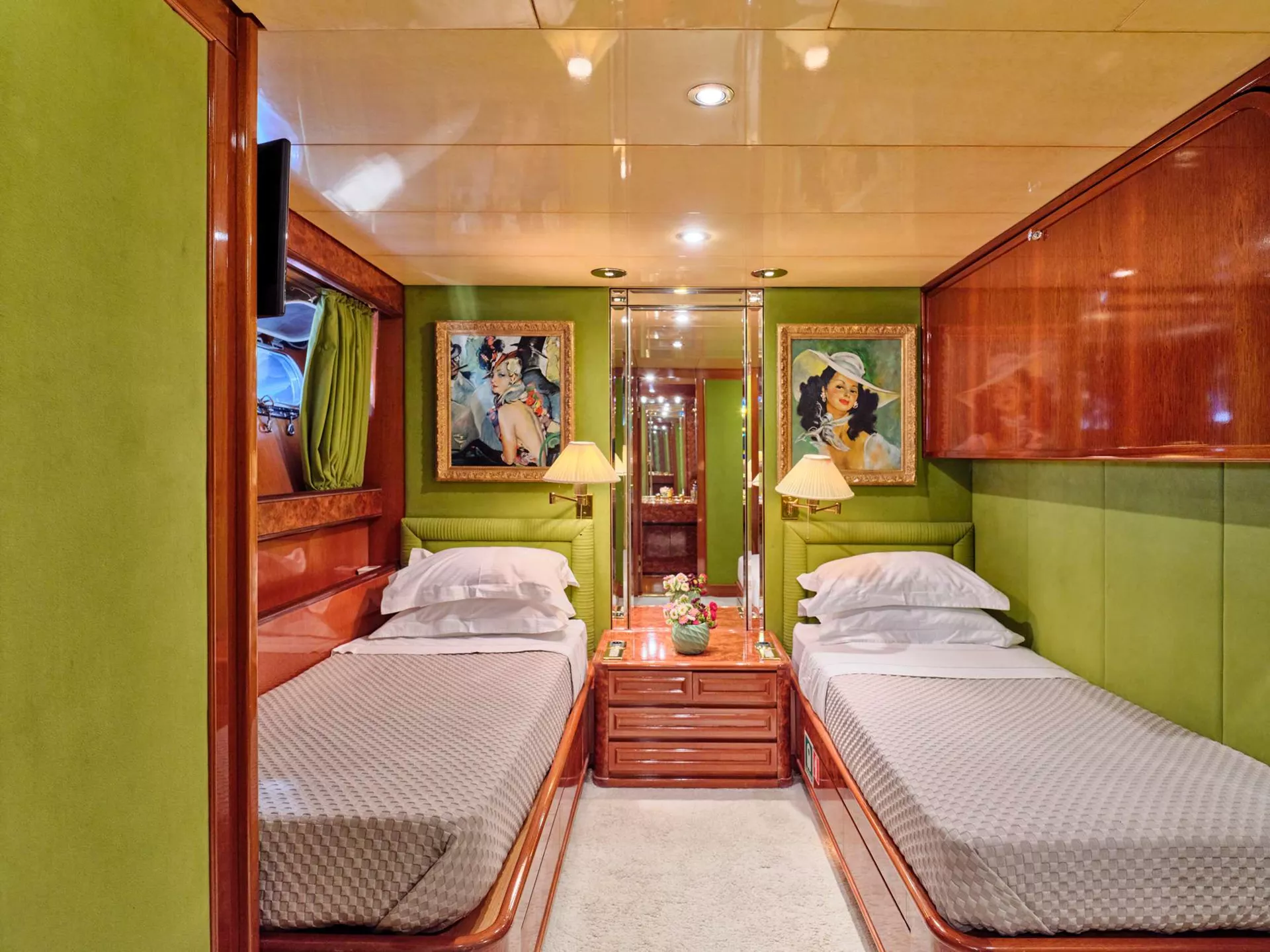 2 Twin cabins with two single beds (0.90 x 1.90) (each convertible to a queen size bed) and a pullman berth each