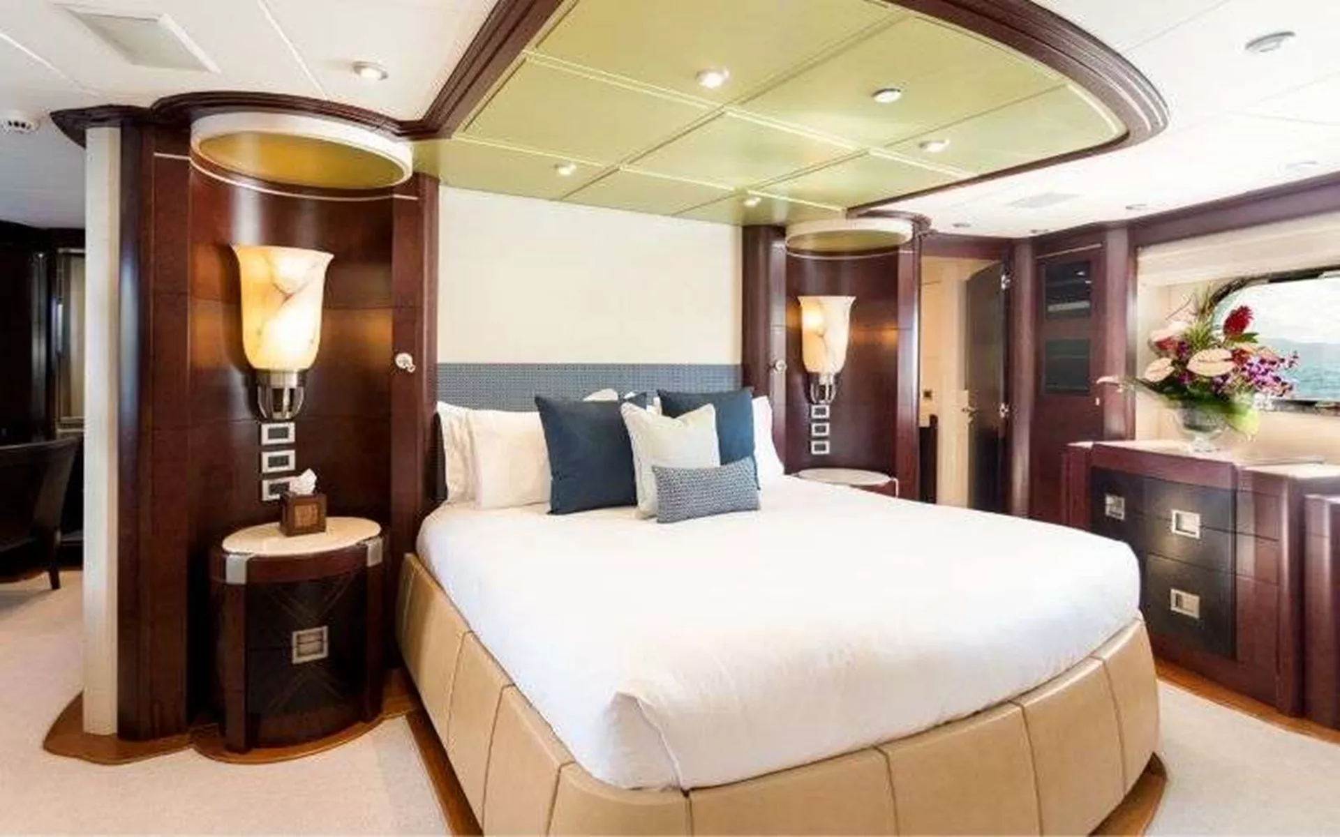 The full beam, King Bed Master Stateroom is situated on the Lower Deck.
