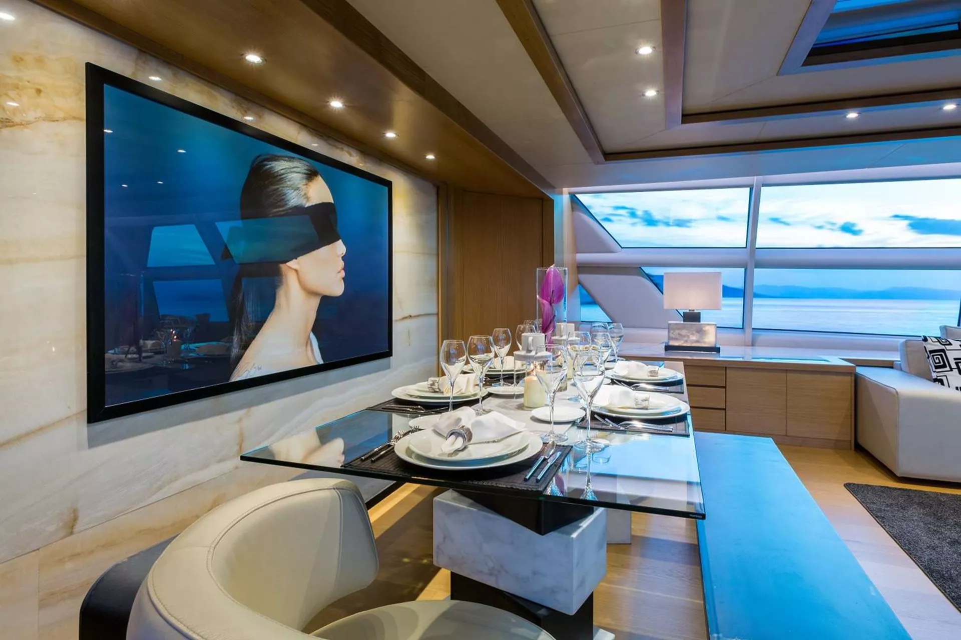 - 1 Master 48sqm with independent saloon and a sofa/bed, which can be converted into a 6th cabin and has separate WC