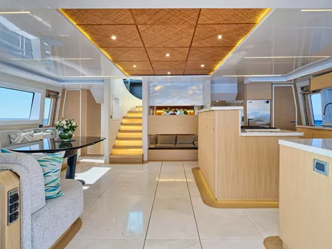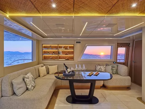 A rare find of luxury yacht combined with sporty/ adventurous qualities which stands out head and shoulders above other monohull and catamaran hull yachts of this size. From bow to stern, guests cannot truly imagine the comfort, quality and spaciousness of SAMARA until stepping aboard. Named after the "winged seed of the Sycamore tree", this yacht was built to glide effortlessly, efficiently and steadily over long distances, in shallow waters thanks to a minimum draft. Packed with innovative features such as solar power technology and cork decks while also catering to the most adventurous or laid back cruisers, every type of guest will appreciate what this yacht has to offer. The volume is remarkable with 4000 square feet aboard – beyond that of larger monohulls and attributed to her 31’ beam versus the typical 20’.