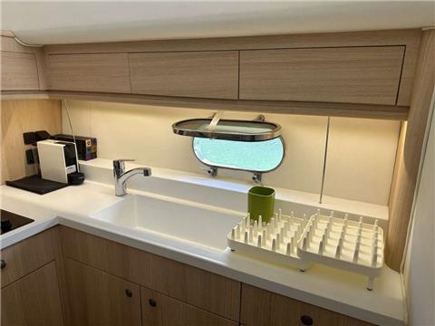 Designed to maximize the space onboard, each of the cabins features plenty of built-in storage and shares access to the yacht’s two