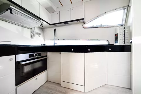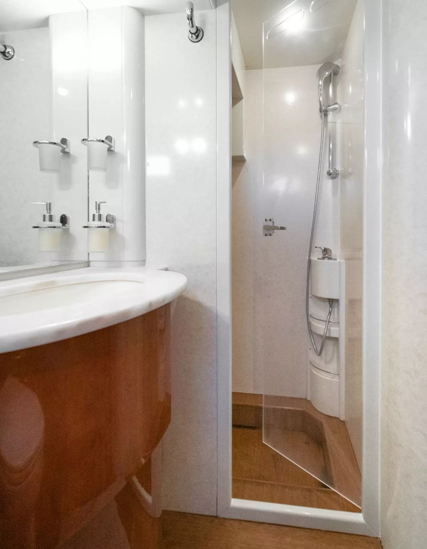 1 Master Cabin with walk in closet, 1 VIP Stateroom & 1 Twin Cabin, all with en suite facilities plus crew cabins in a seperate compartment