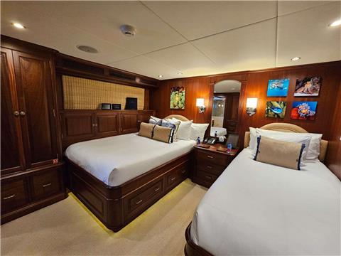 Guest Stateroom with Double and Twin, private bath w/ marble vanity top, marble flooring and large marble shower. Has a 24"flat panel TV.