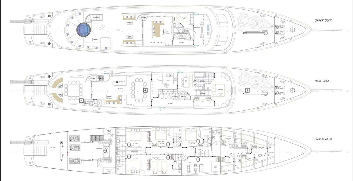 2 Convertible Cabins are 18m2 with Twins at (0.9m x 2m) or convertible to Queens at 1.8m x 2m.