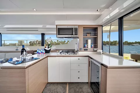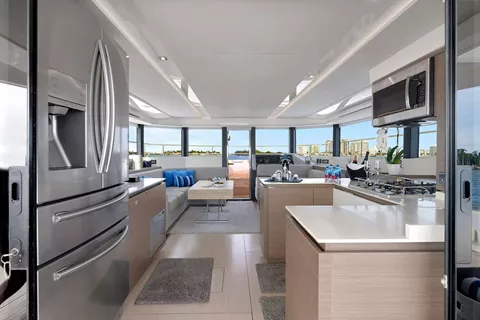 Step into the pinnacle of luxury and performance with the Leopard 53 Powercat, a marvel of modern marine engineering. This sleek catamaran effortlessly combines sophistication with practicality, featuring a spacious open-plan salon and galley that seamlessly integrates with a generous outdoor cockpit, perfect for both entertaining and relaxation. Accommodating three beautifully appointed staterooms including a spacious owners version side, each with its own private head, the Leopard 53 ensures unparalleled comfort and privacy. The innovative hull design and powerful engines deliver exceptional stability and impressive speed, making every voyage both smooth and exhilarating.