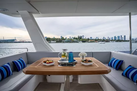 Throughout the entire day, a highly trained and experienced crew of two (professional captain and one stewardess) will attend to your every need as you enjoy the cruise or go out exploring the beauty of the surrounding waters. As locals, we can suggest popular itineraries or entirely customize your charter based on your preferences