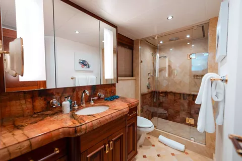 Designed for both comfort and performance, Blue Time accommodates up to 10 guests in five beautifully appointed staterooms, including four king suites and a versatile twin cabin, ideal for families or mixed groups. With a professional 7-person crew led by veteran charter Captain David, every detail of your journey is expertly handled.