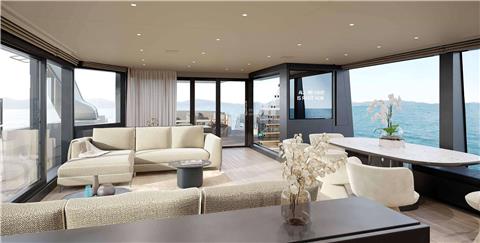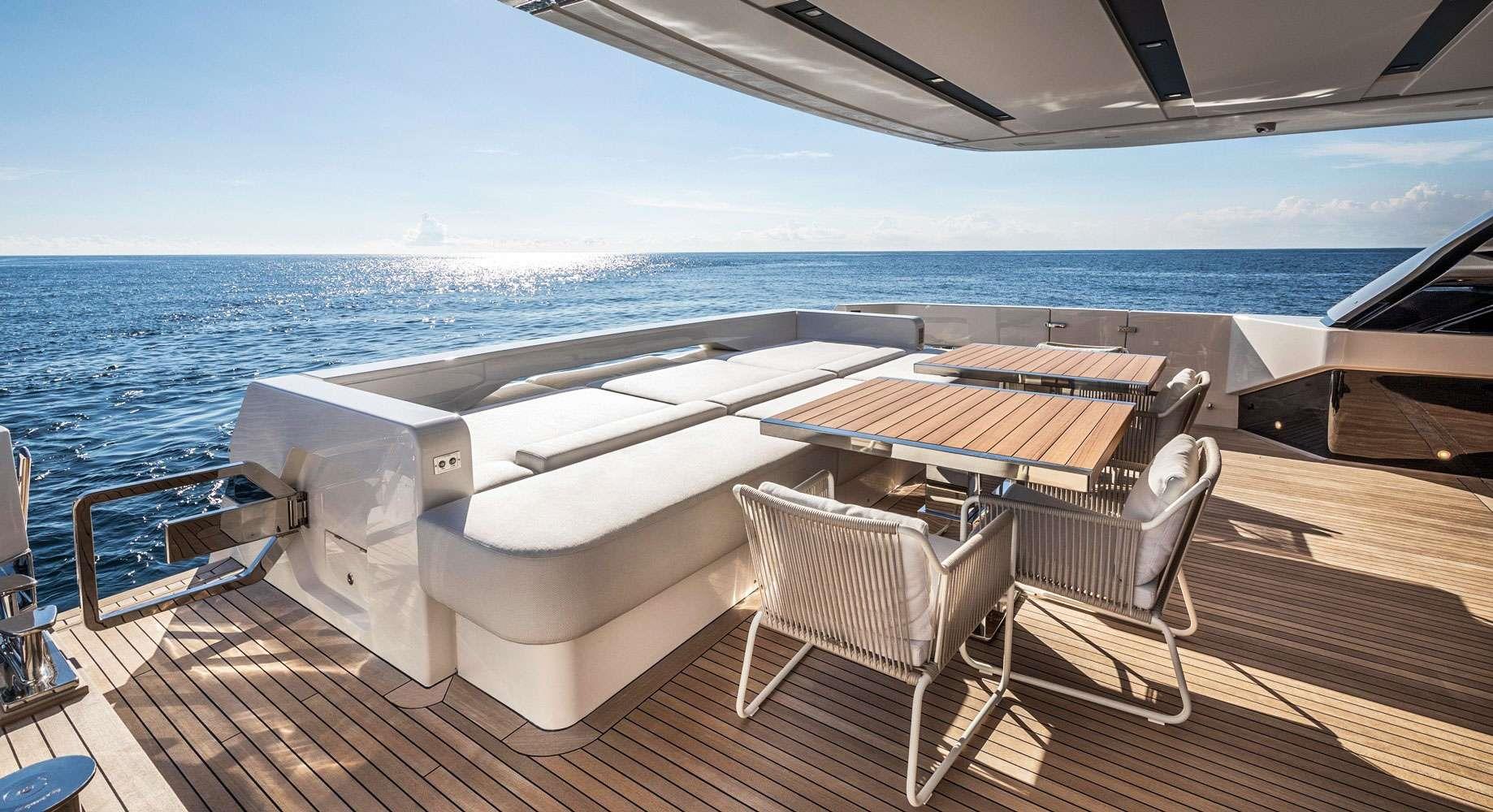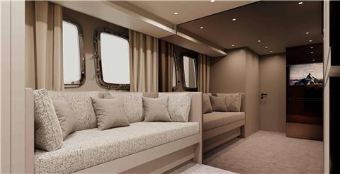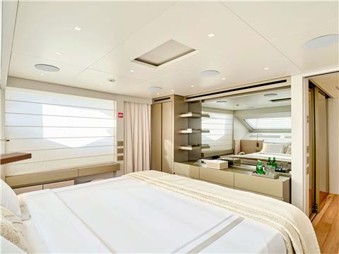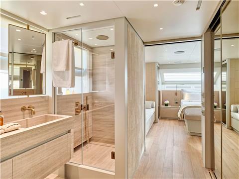 Master Cabin on the Main Deck with King Size Bed, Walk-in Closet, safe and En-suite facilities. Direct access to private exterior area at the bow.