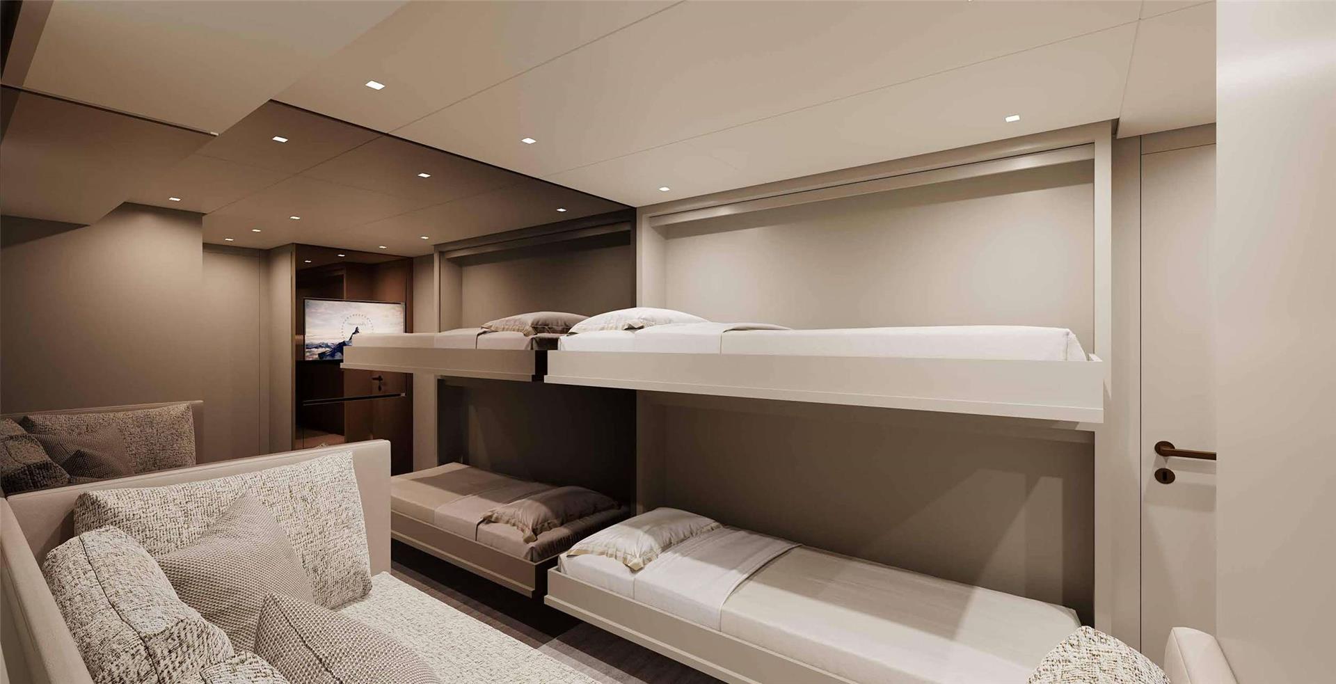One Convertible Cabin with 2 Bunk Beds plus 1 Sofa for kids. Can be converted to a massage room. En-suite facilities.