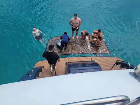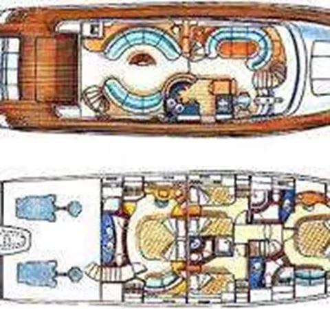 the boat has 4 staterooms and 4 bathrooms, and a 2 person crew area, though the boat would prefer the crew sleeping in one of the staterooms with the over and under bunks