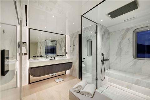 With 500 GT of interior volume, LEGASEA accommodates up to 12 guests in 6 luxurious suites. The owner’s suite, located on the main deck, with a private balcony, a Jacuzzi, and breathtaking panoramic views. Five well-appointed guest suites on the lower deck ensure an intimate and comfortable voyage for all guests onboard.