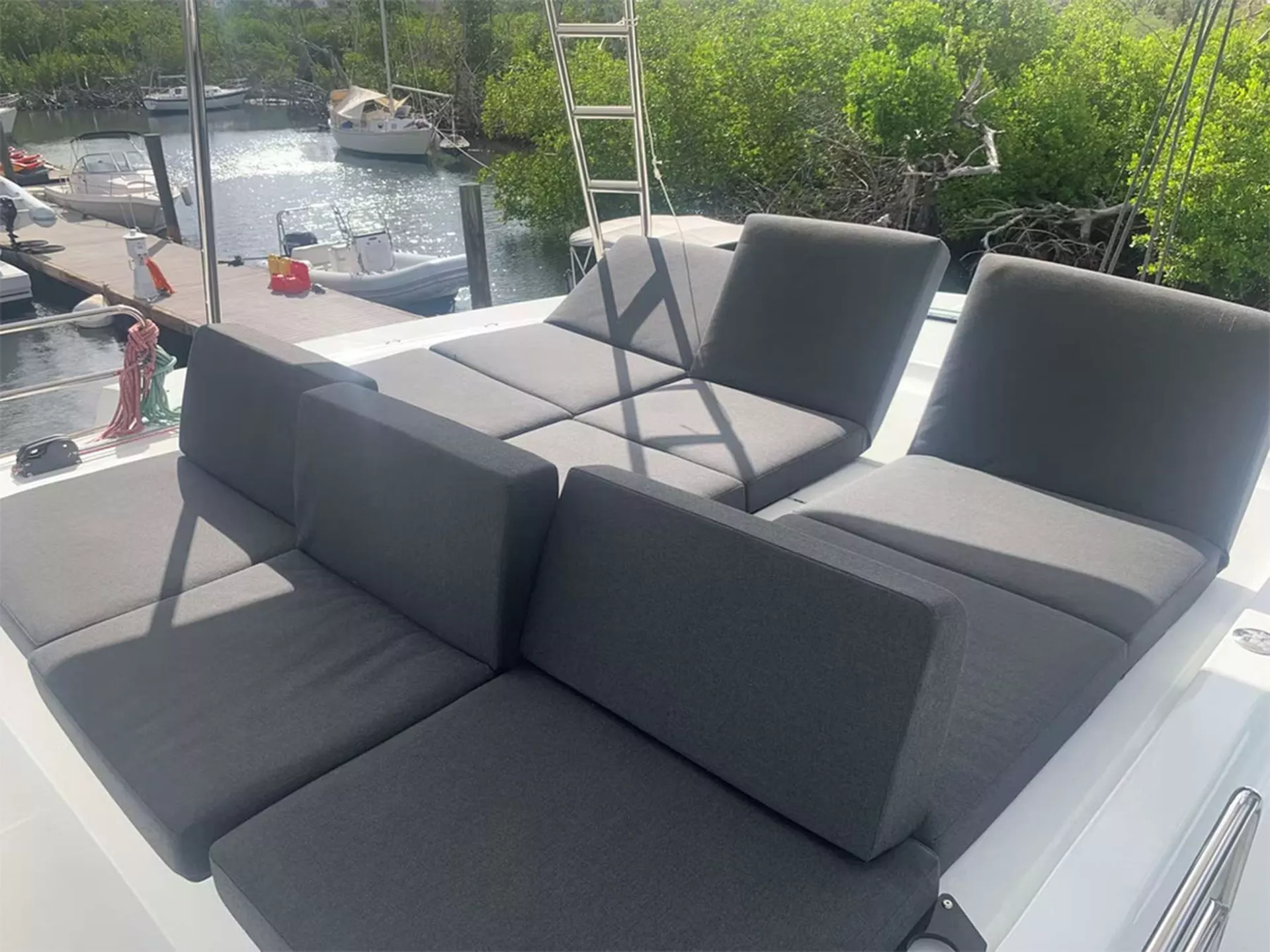 BIG BERTHA is a 2022 Lagoon 50 catamaran designed for effortless Virgin Islands escapes—spacious, stylish, and made to slow life down. Sleeps 8 in 4 Queen cabins, each with a private ensuite bathroom and separate shower, plus full A/C for cool, hotel-comfort nights. The bright, open salon with panoramic windows flows into the dining/galley space for easy, social days at sea. Standout feature: multiple lounge zones—flybridge seating with 360° views, a cushioned foredeck for sun and sea breezes, and a shaded aft cockpit for breezy al fresco meals. Snorkel the reefs, play with the toys, toast the sunset, then retreat to your own ensuite cabin. BIG BERTHA doesn’t just take you to paradise—she is paradise.