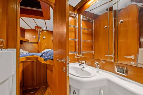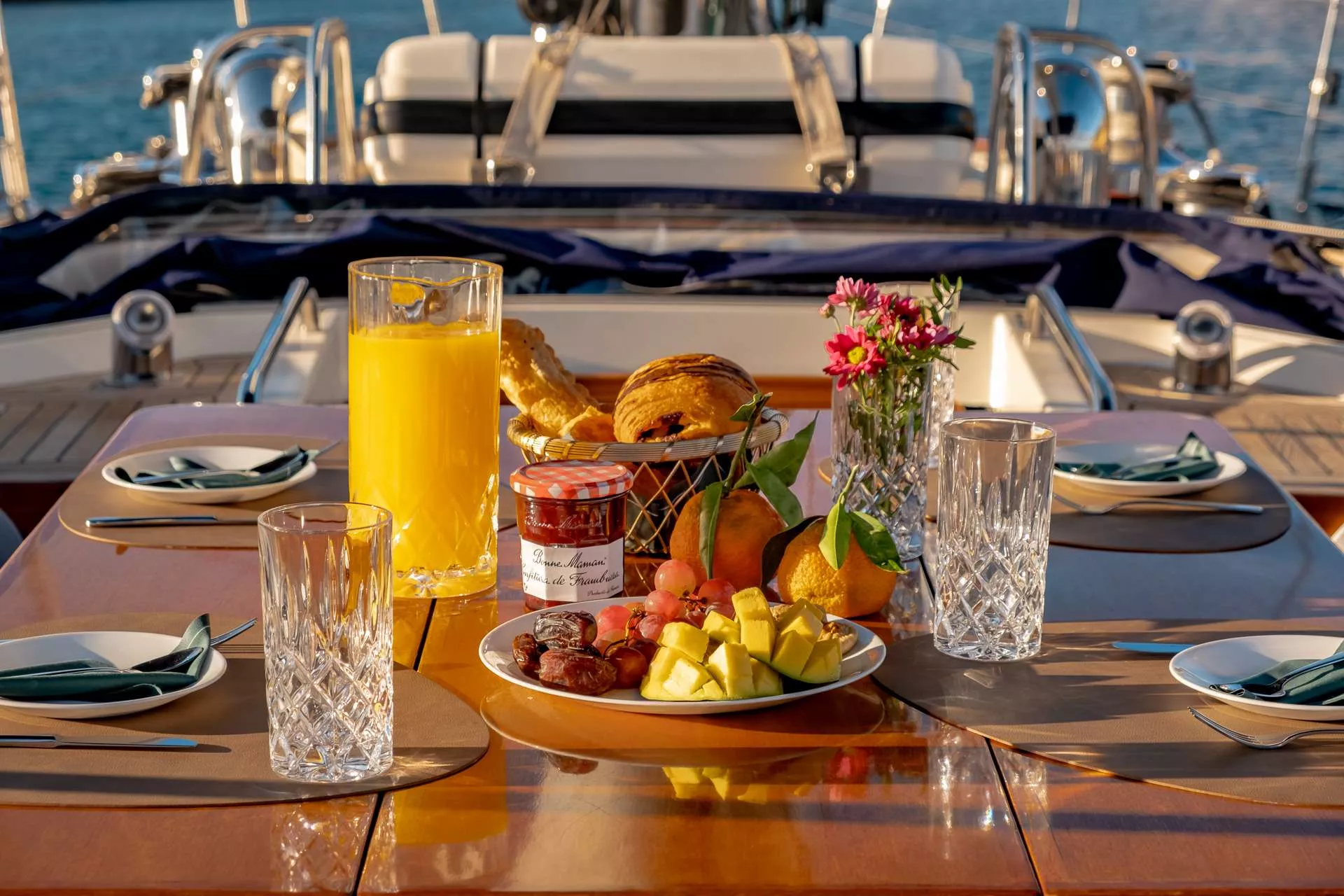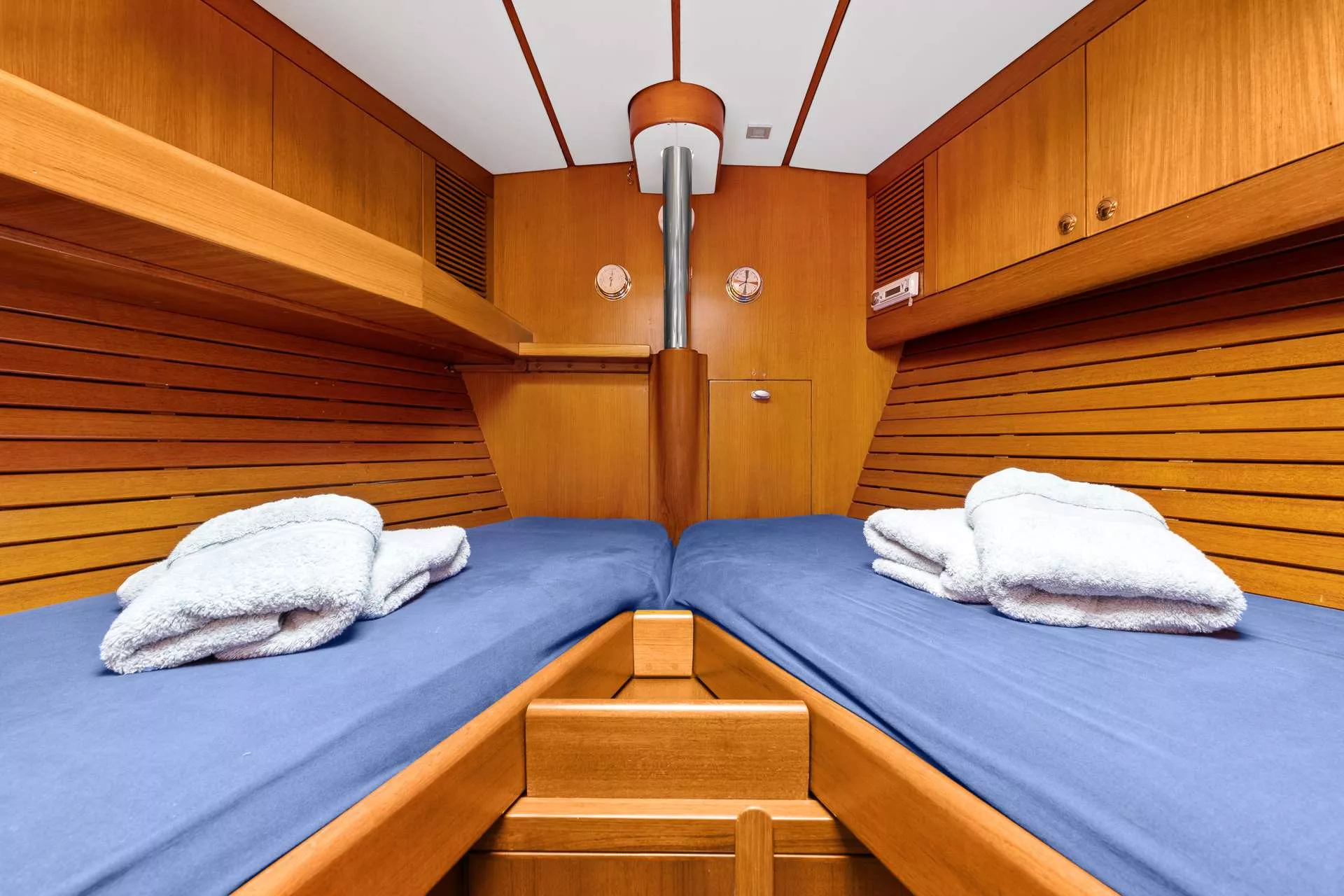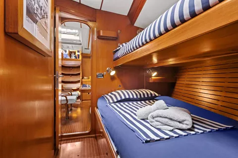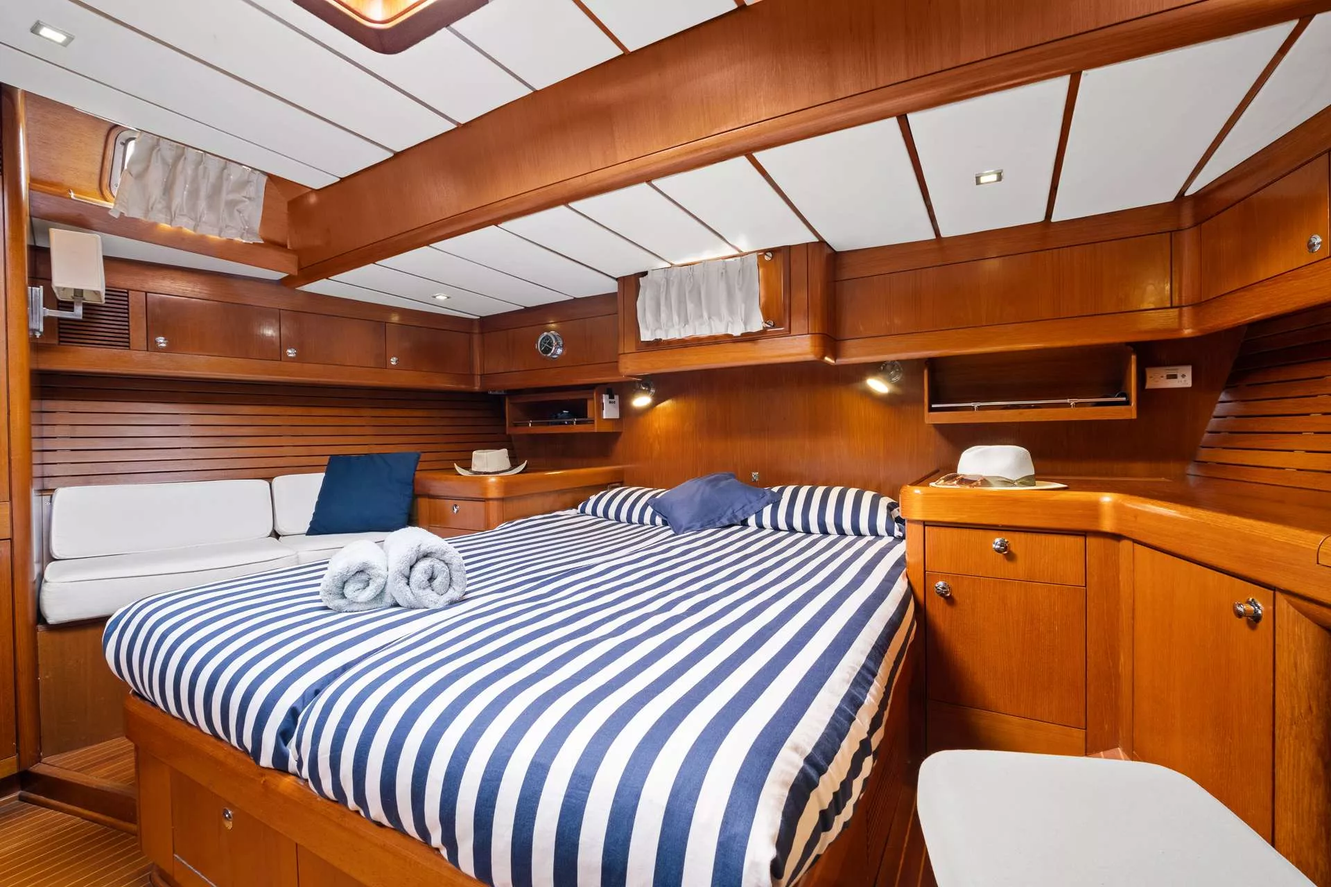„My Eyes Delight“ comfortably sleeps up to 10 guests in 4 elegantly appointed staterooms. Each stateroom features fine woodwork, soft lighting, and ample space. The staterooms are designed to provide a tranquil retreat after a day of sailing, ensuring restful nights and serene mornings. The yacht also accommodates 2 professional crew members who are dedicated to delivering a first-class charter experience.