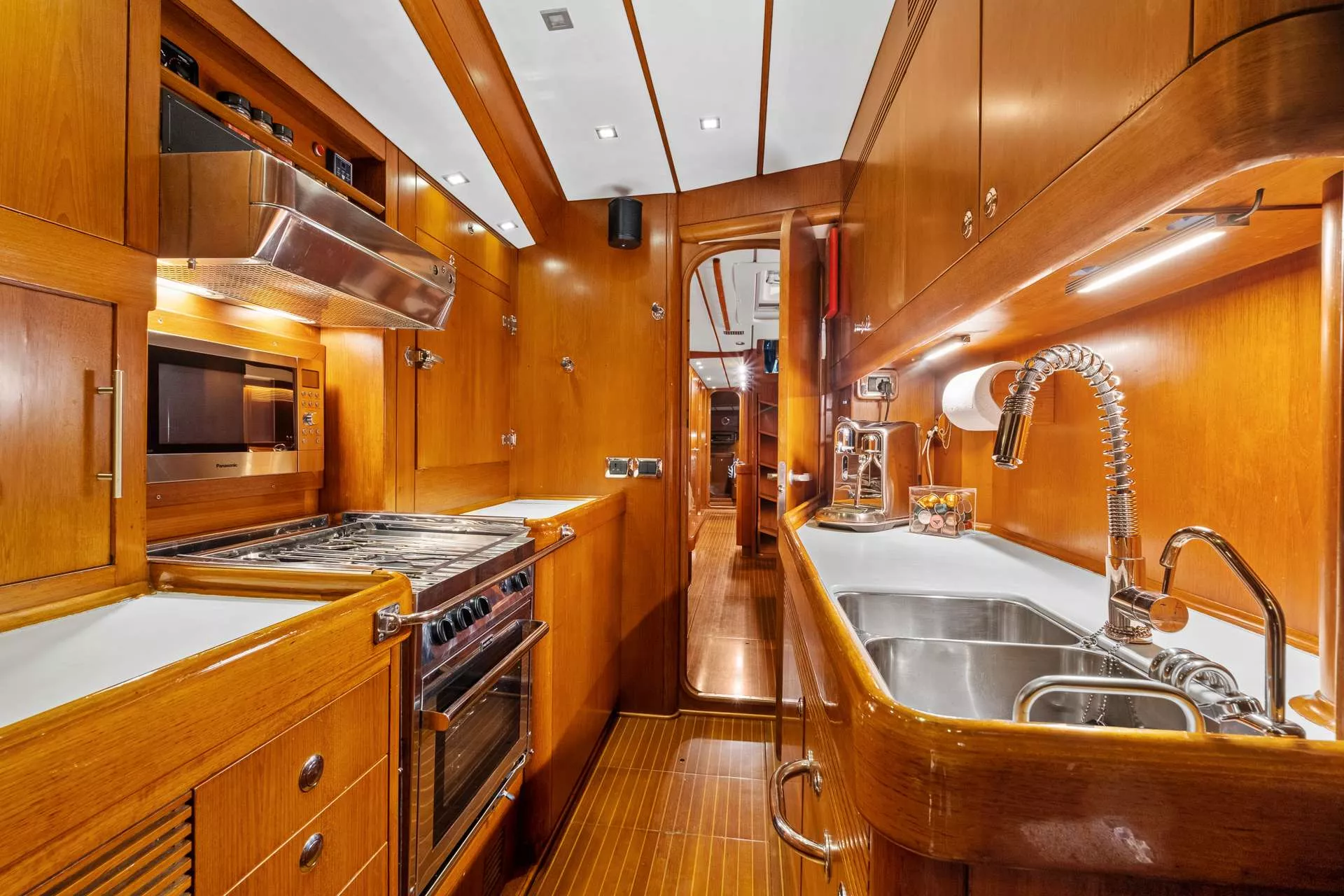 On-Deck Experience: Above deck, „My Eyes Delight“ continues to impress with her sleek, graceful lines that reflect her superior sailing capabilities. The deck spaces are designed for both relaxation and activity, offering plenty of room to soak in the sun, enjoy the breeze, or take in the panoramic views of the ocean.