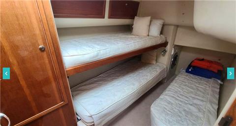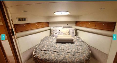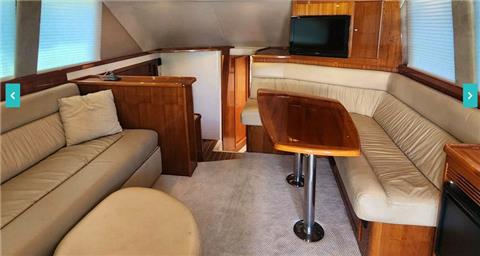 The two-stateroom, one-head layout offers plenty of space for extended trips, with a full galley, a comfortable salon, and a fully enclosed flybridge with updated electronics. The large cockpit is perfect for fishing or relaxing, with plenty of storage and easy access to the water.