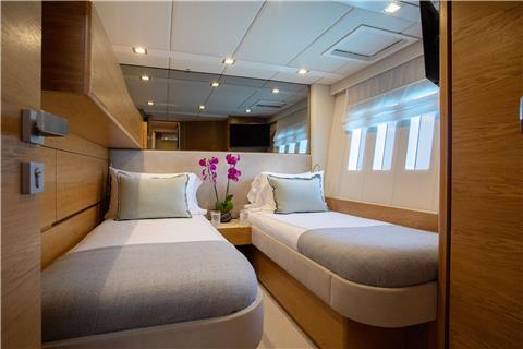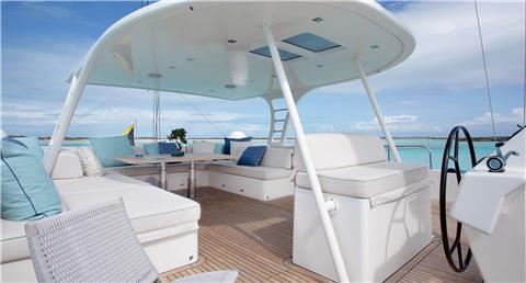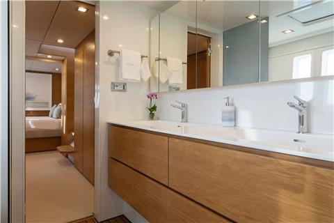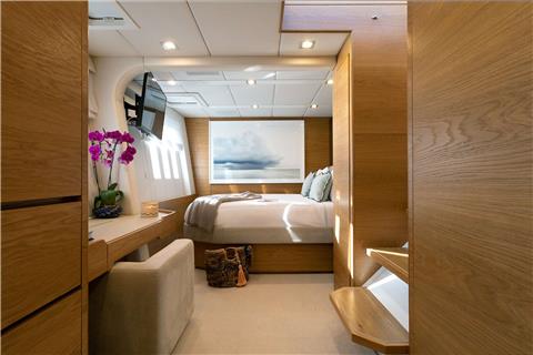 Launched in 2017 and meticulously refitted in 2023, INDABLUE boasts a unique design that sets her apart. Her hydraulic aft platform serves as a versatile launch system for tenders or seabobs and doubles as a spacious swimming or lounging area. The front terrace, accessible directly from the saloon, features sunpads, a sofa, and a table—perfect for outdoor relaxation and soaking in panoramic ocean views.
