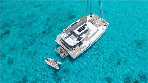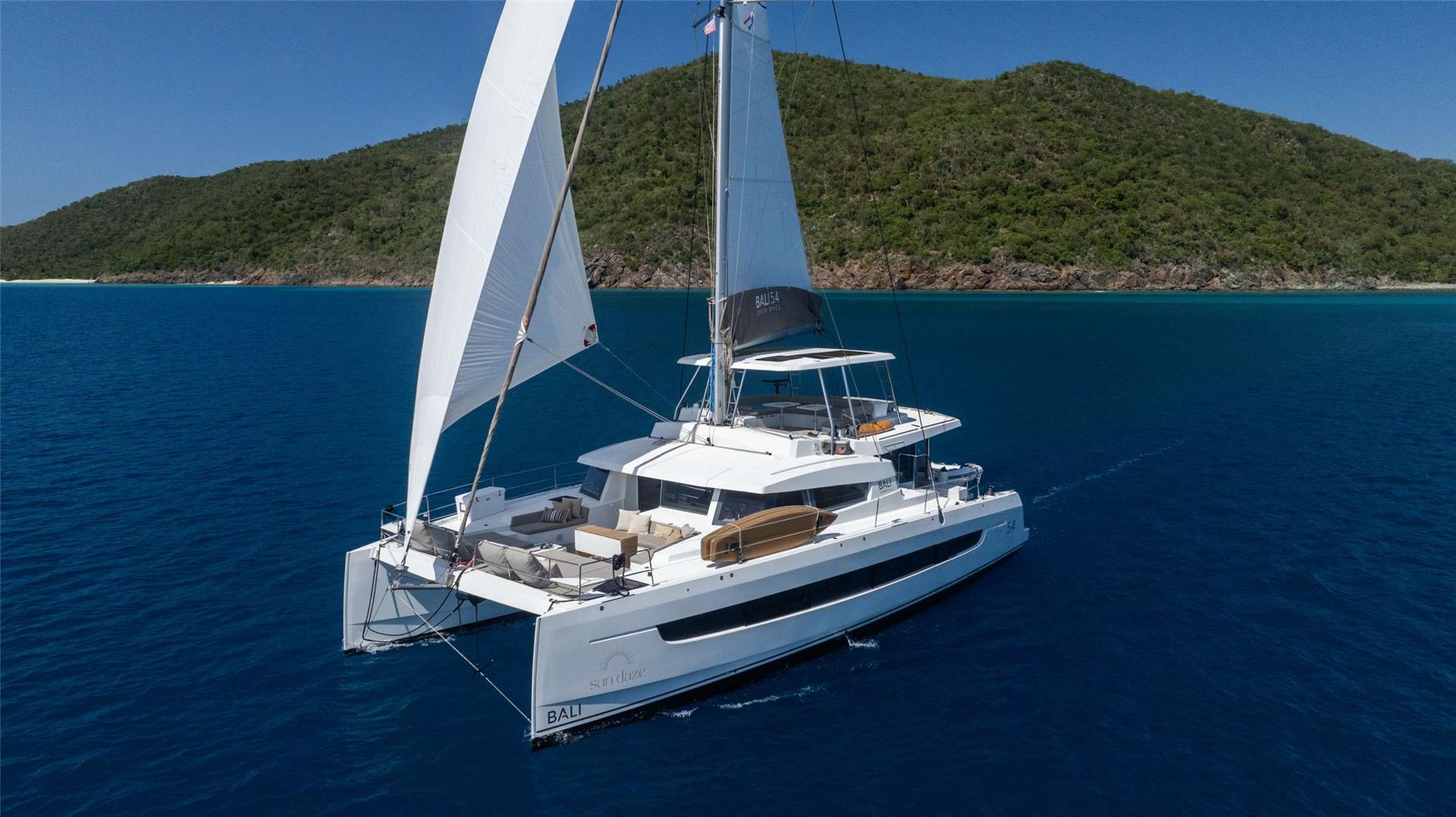 Sun Daze will accommodate 8 charter guests in 3 spacious queen cabins and 1 sprawling master cabin for those who desire more space. She is a 2023 sailing catamaran offering Starlink, a hydraulic lift, teak, a hard top bimini, solar panels, air conditioning, water maker, ice maker, full sized refrigerator, a fully customizable menu, ecofriendly and reef safe toiletries, a well-stocked ship's bar, and coffee/espresso machine.