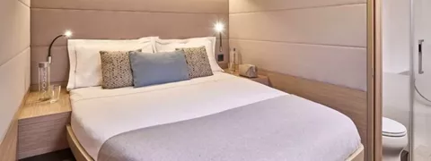 Elegant Cabins: Four guest cabins, each with en-suite bathrooms and separate showers, are designed with horizontal lines to blend with the horizon, create a sense of harmony and relaxation.