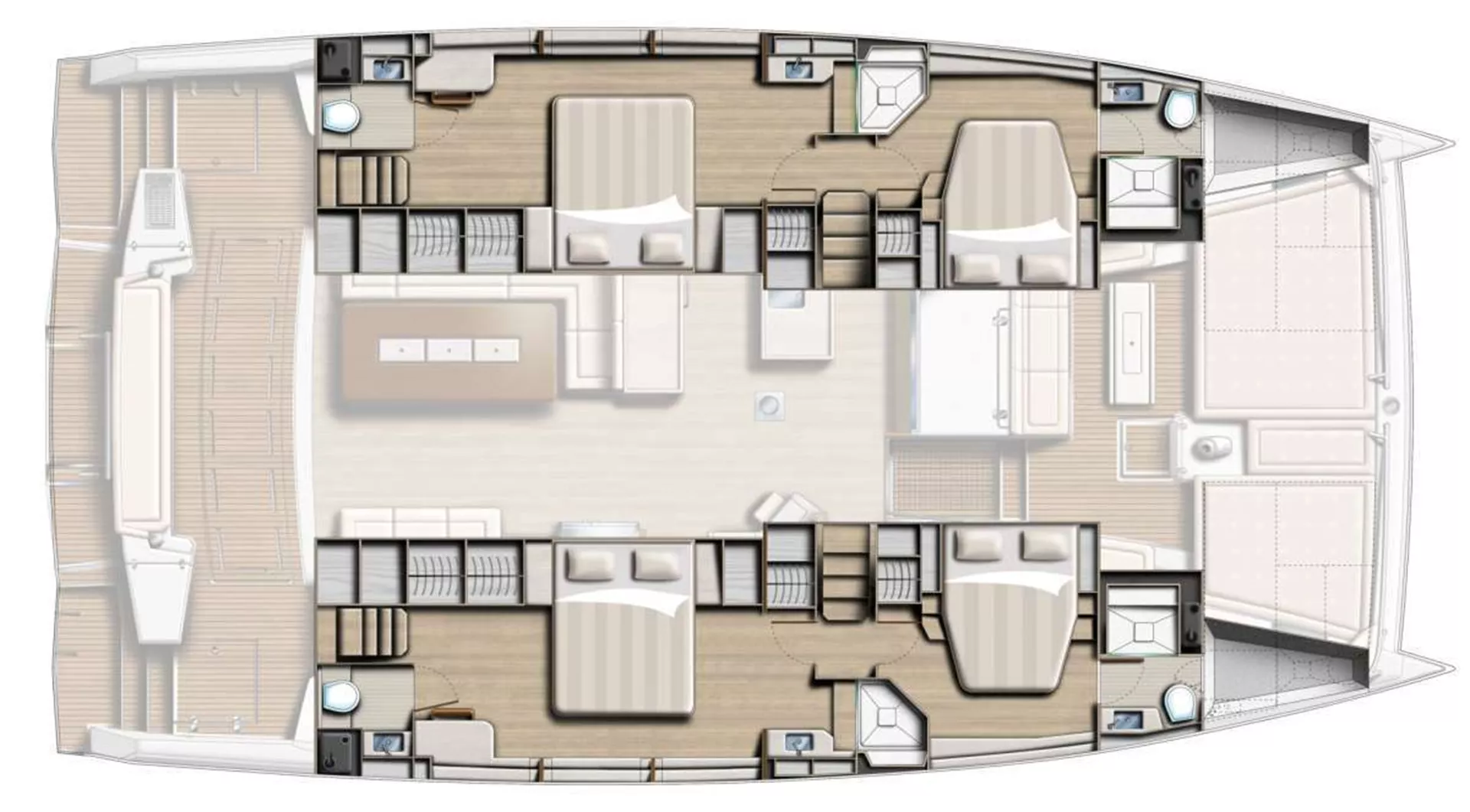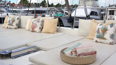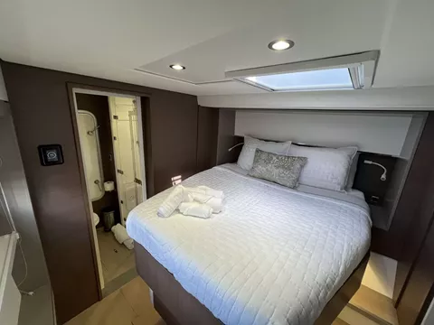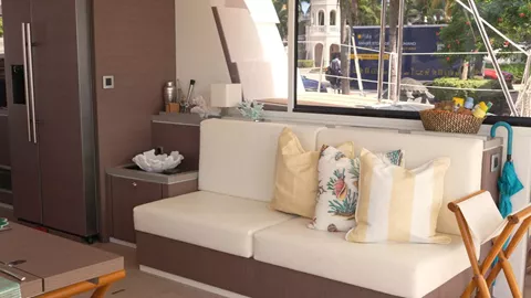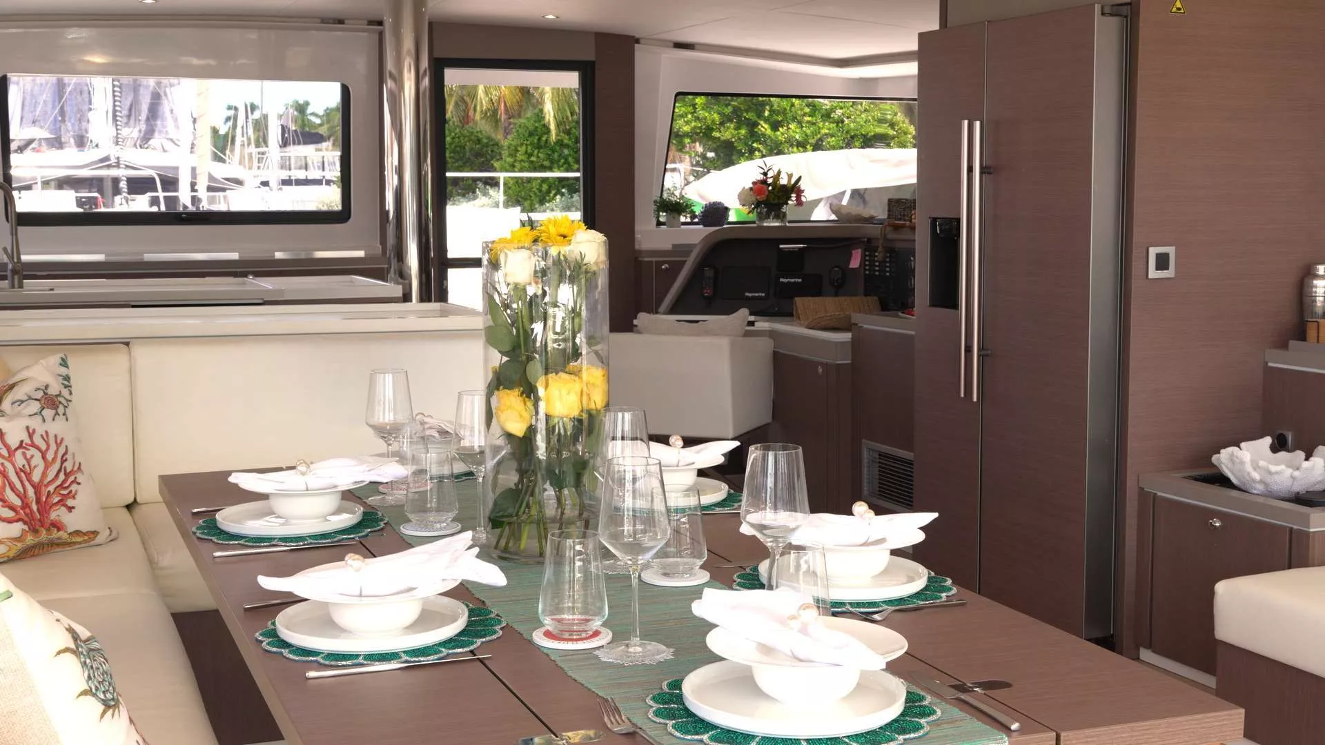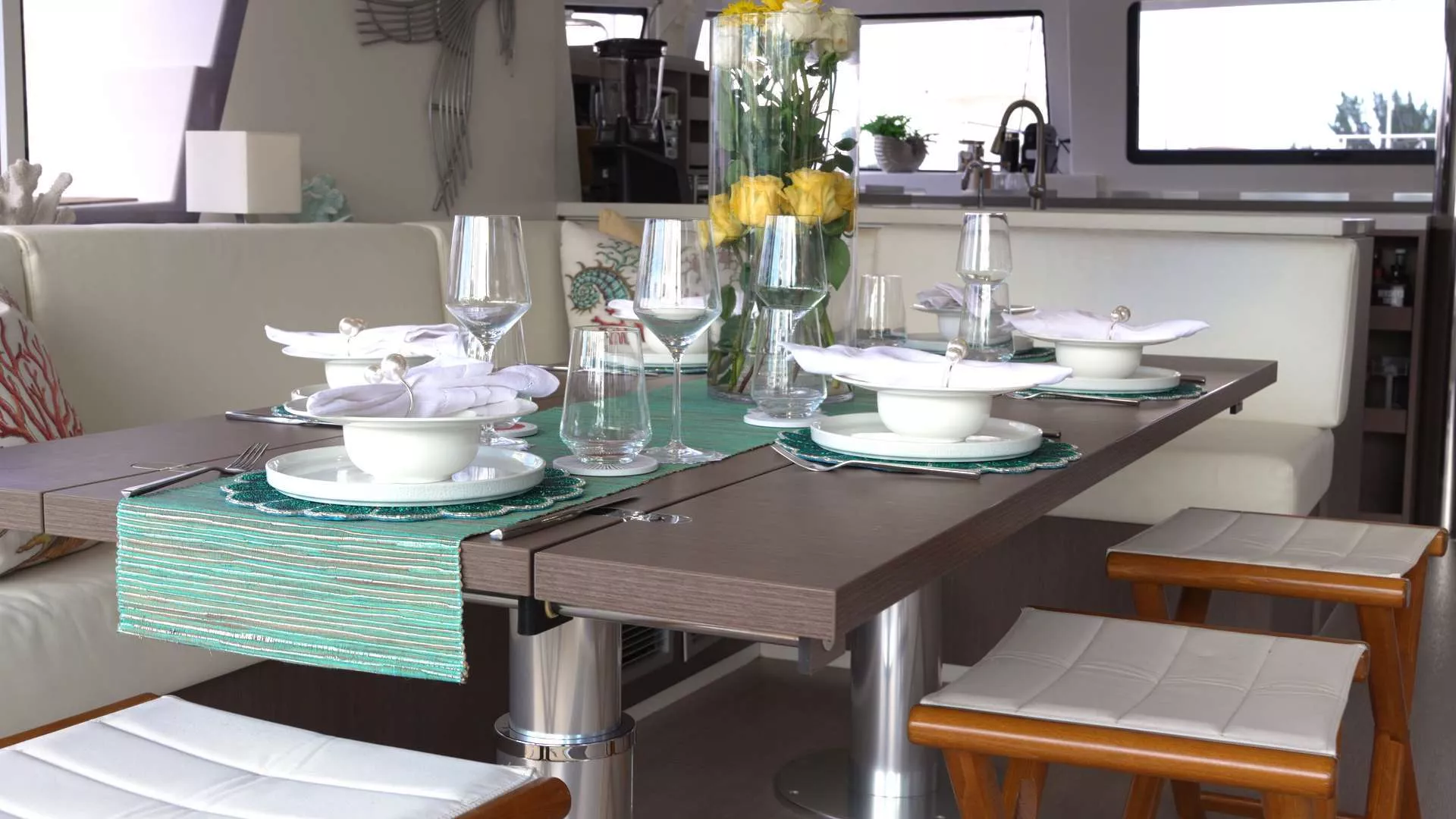 With daybeds covering the large foredeck and an additional dining table situated outside, sundowners & appetizers have never been more appealing.
