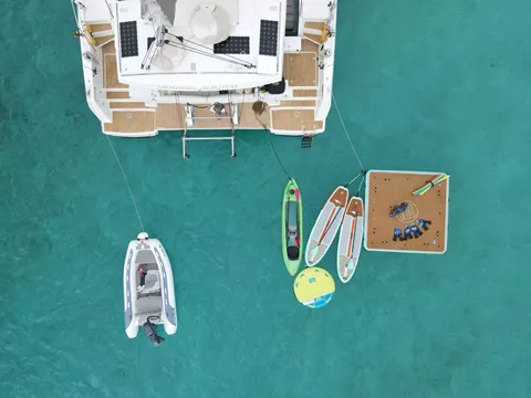 Zuri 3 is equipped with a wide variety of water toys, including underwater scooters, snorkeling gear for all ages, SUPs, see-through kayak, a 10-by-10ft floating platform that can be towed behind our tender to enjoy drinks & snacks whilst moving through the canals, beach games and floating noodles.