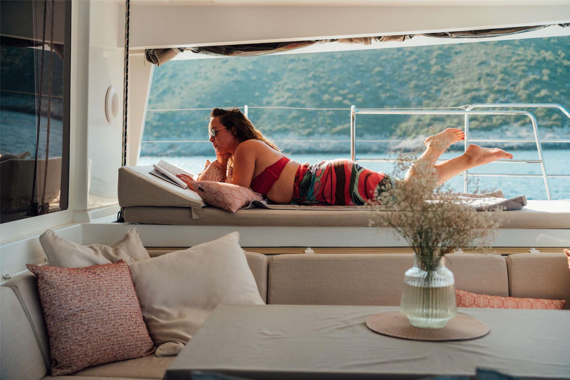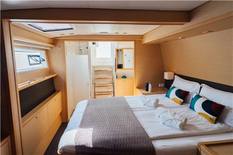 Owned by the dedicated crew, Zoki and Sanja, BAZA exudes a home-like atmosphere—warm, welcoming, and with meticulous attention to detail. On board, there are three cabins: a Master Cabin and two additional double cabins. Each cabin features a queen-size bed and a private bathroom. BAZA offers ample outdoor space, including day beds on the bow, soft day beds, and cushioned seats on the flybridge, as well as a spacious outdoor dining area. Thanks to its clever design, the Lagoon 560 BAZA provides an exceptional level of comfort and generous living spaces on board.