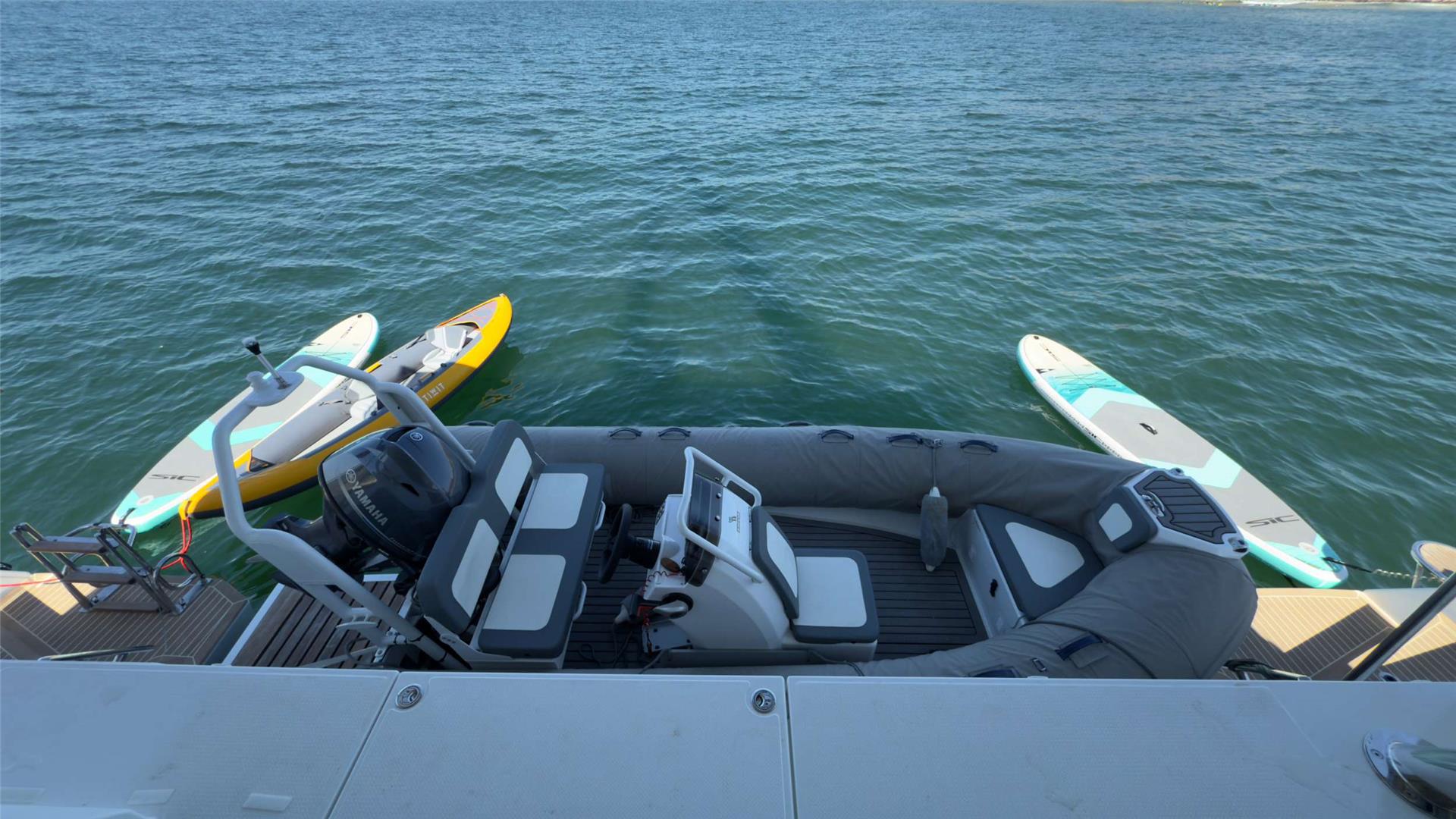Signature to the Samana 59 is an expansive flybridge—the largest in her category—creating a lounge-dining “terrace” over the sea for daybeds, sundowners, and stargazing. Below, the generous aft cockpit flows into a panoramic salon with a sociable, open-plan galley, while a forward lounge on the bow adds another breezy hangout for morning mimosas or sunset views. At the water’s edge, a hydraulic swim platform makes ocean dips and launching water toys a breeze.