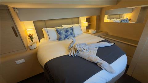 She welcomes up to eight guests in four ensuite cabins: one king and three queens. Catalyst isn’t a typical charter yacht—she’s privately owned, offered only for select weeks, and customized well beyond the standard build to deliver a one-of-a-kind experience that feels polished, personal, and unforgettable