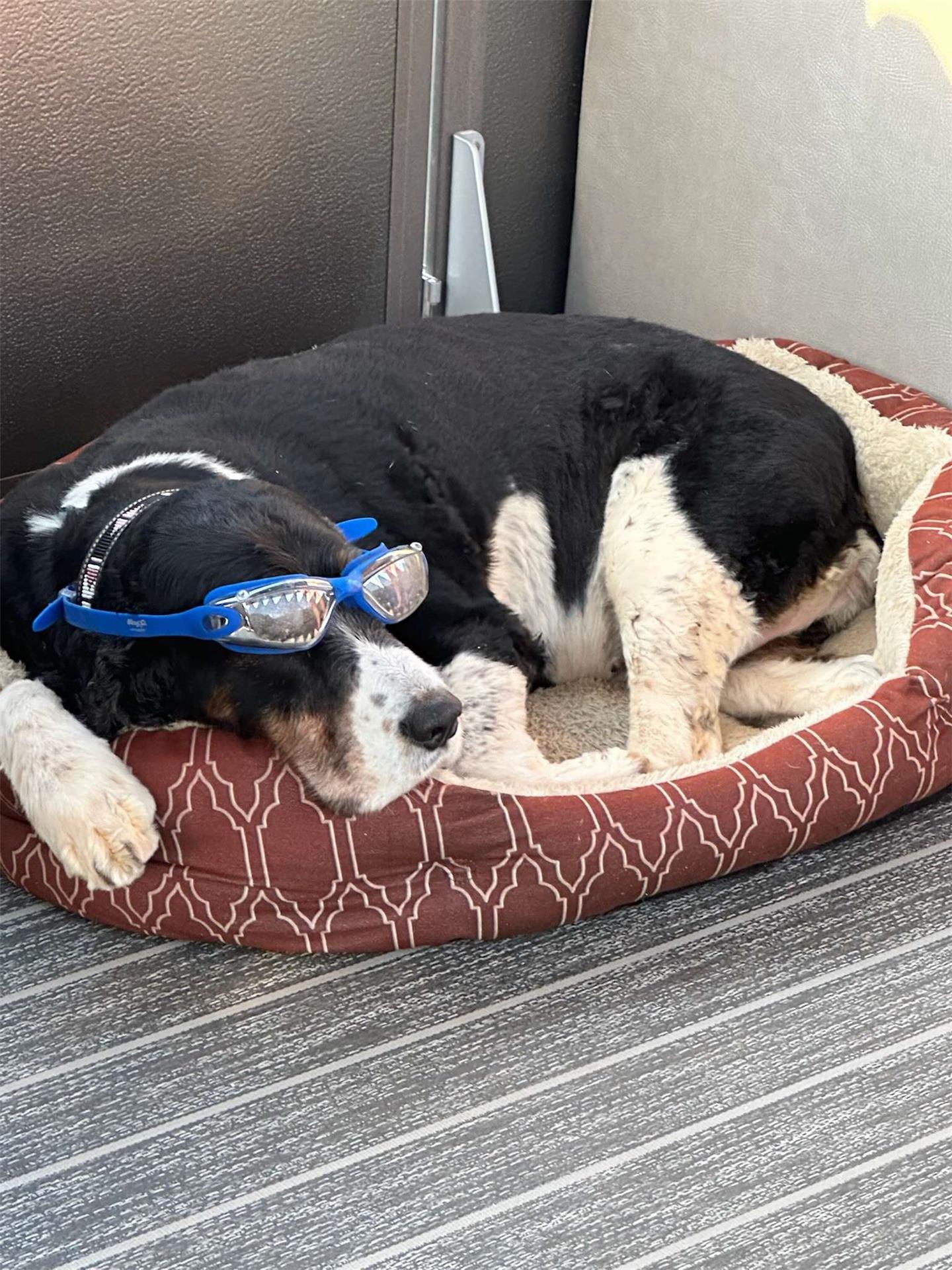 Stella, the namesake and soul of Stella Blue, is a 10-year-old Tri-color Springer Spaniel with a heart as big as the ocean. Affectionate, gentle, and famously well-behaved, Stella is a seasoned sailor whose favorite pastimes include lounging in the coziest nooks onboard, greeting guests with a wagging tail, and keeping a watchful eye on the horizon (in between naps, of course).