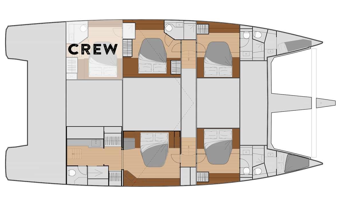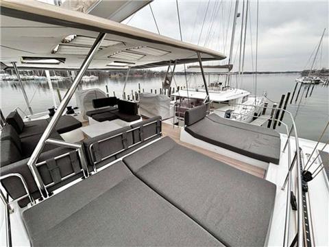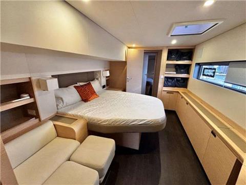Below deck, your accommodations are nothing short of luxurious. The master suite is a tranquil haven with dual access and generous space, while three additional queen cabins offer privacy and style for your guests. Each stateroom is outfitted with high-end bath products, fine linens, and personal climate control for ultimate comfort.