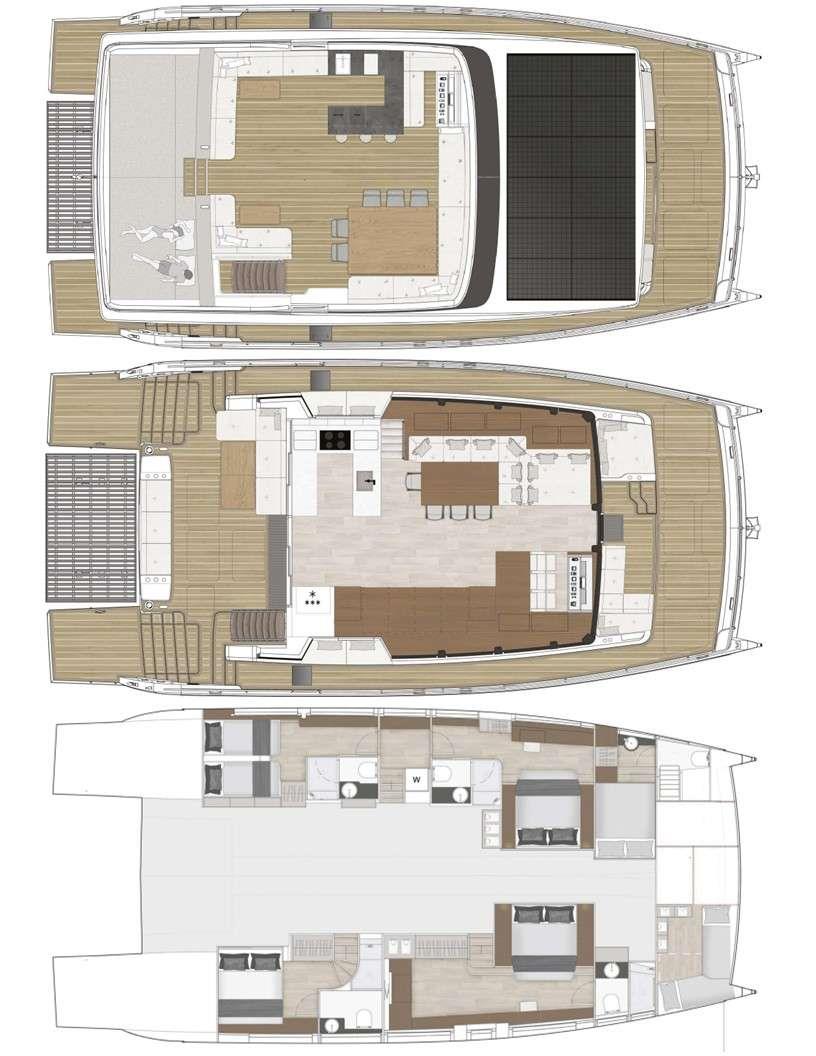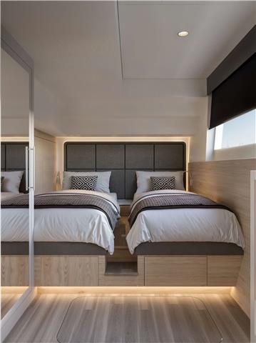 1 Master cabin, 3 guest cabins (double or twin configuration), all with en-suite bathrooms.