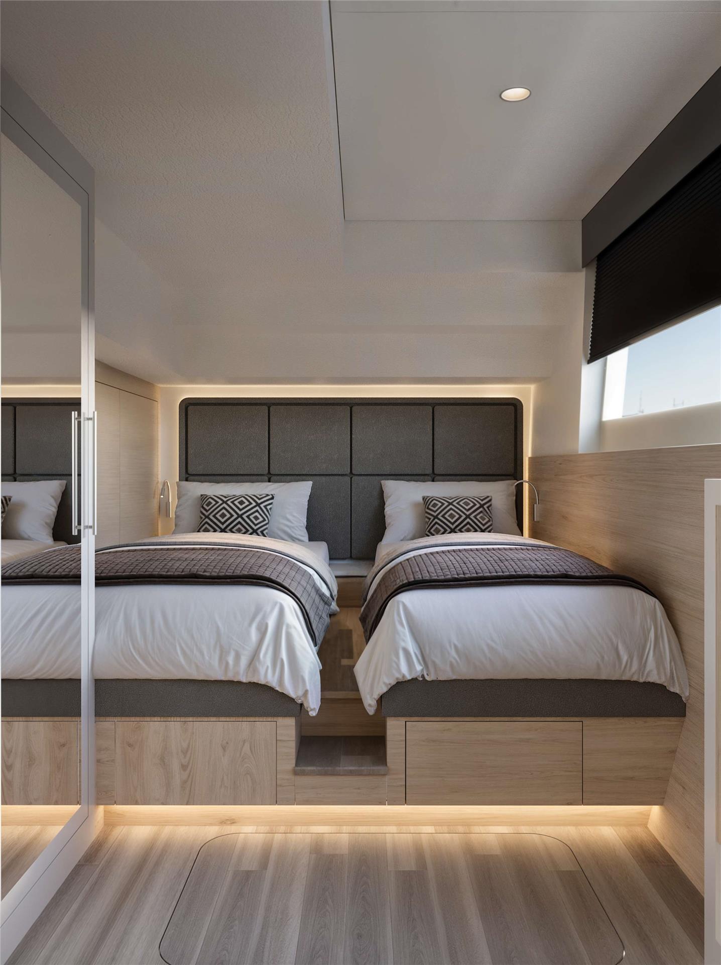 2 separate crew cabins with private deck access.