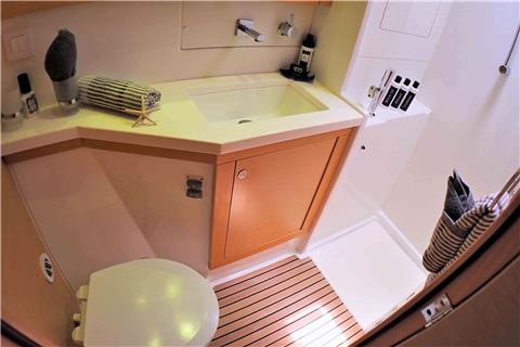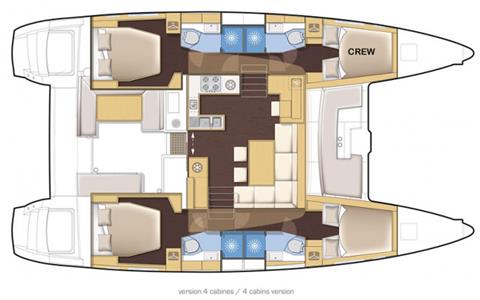 3 Queen cabins with private heads and stall showers. Please note that the starboard forward double berth can be split into a twin V-berth.