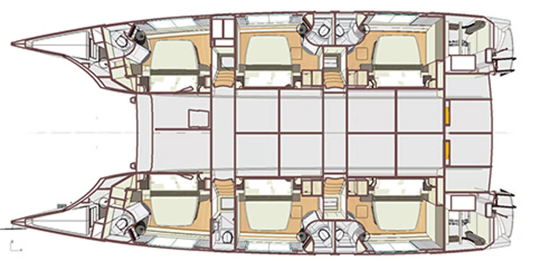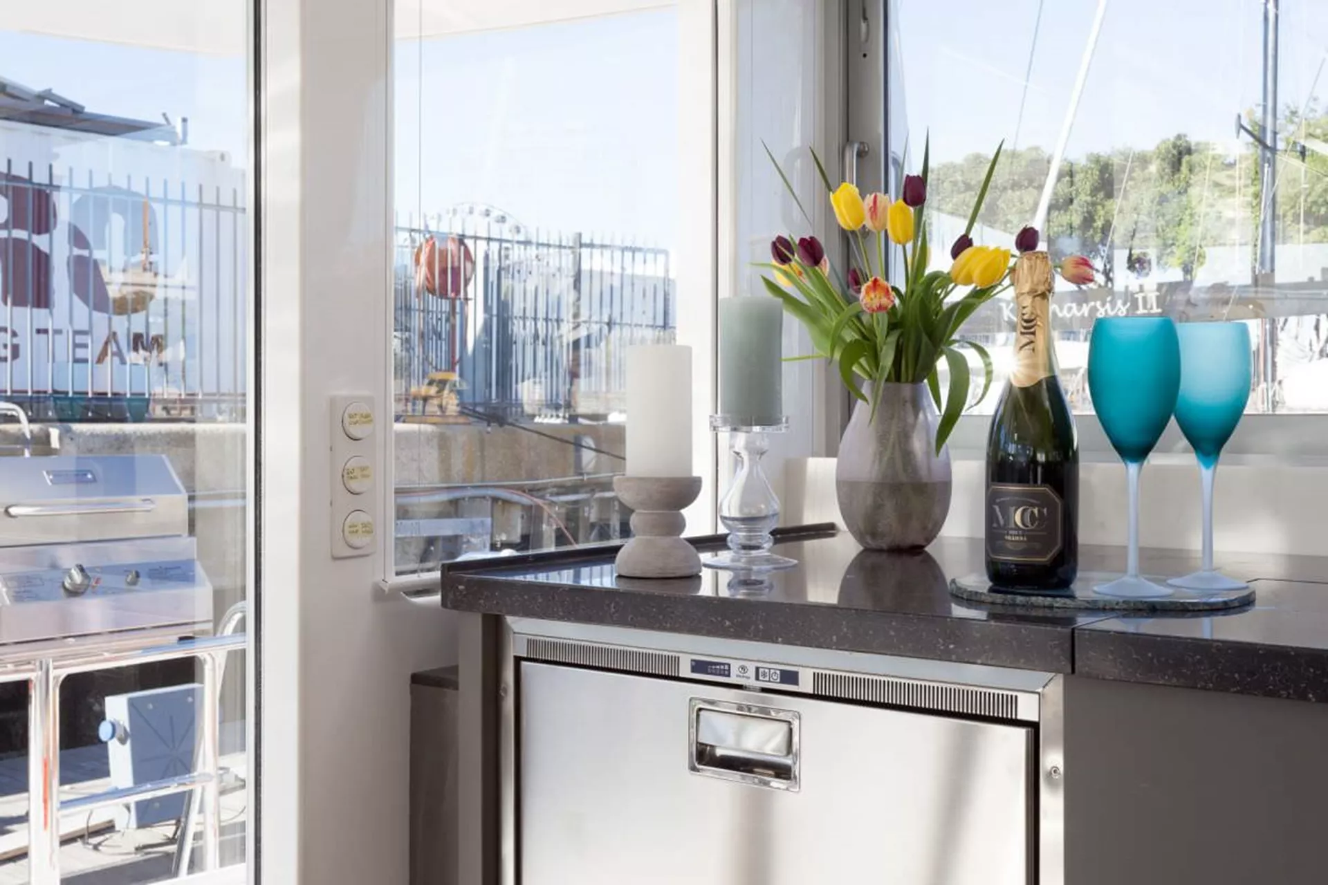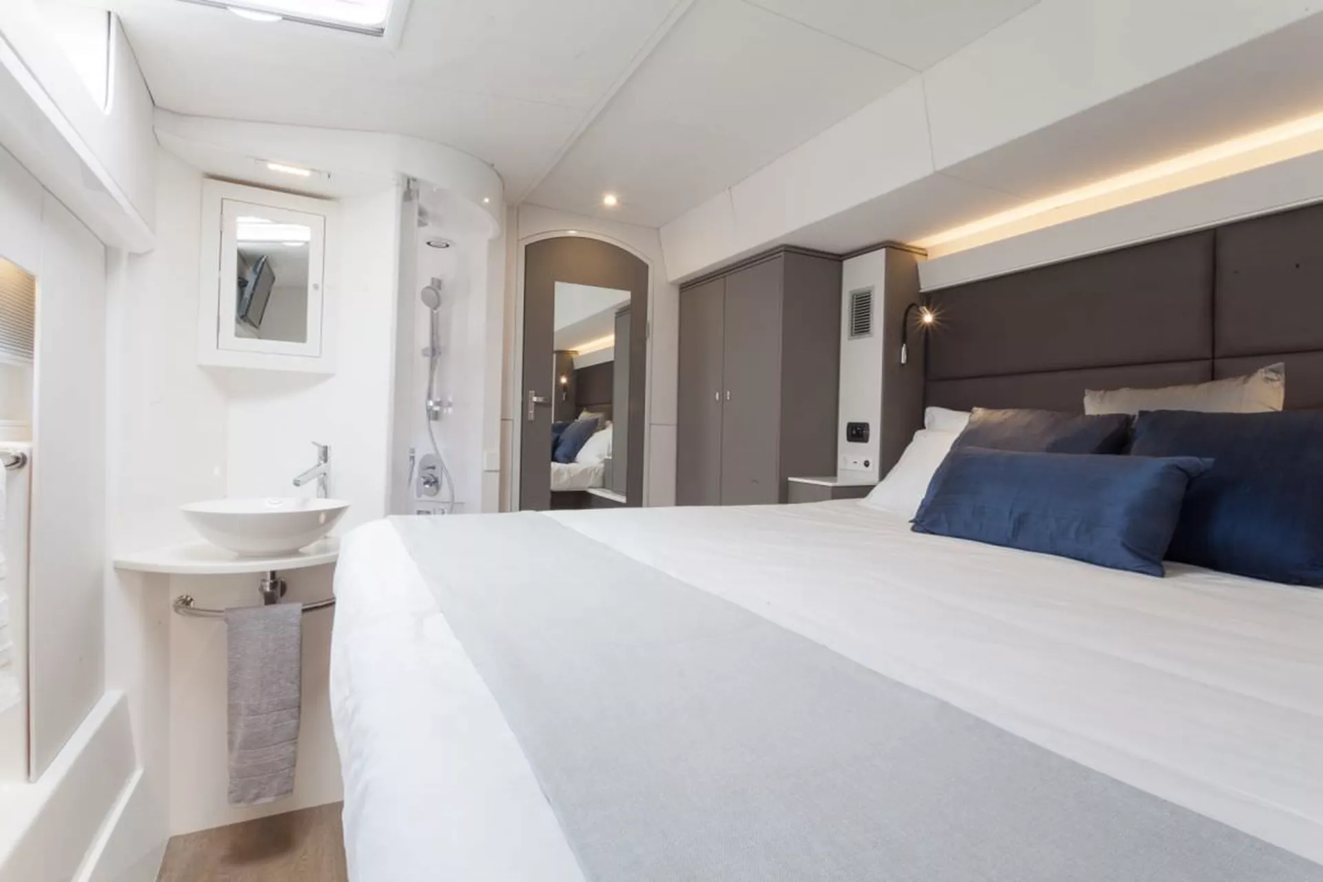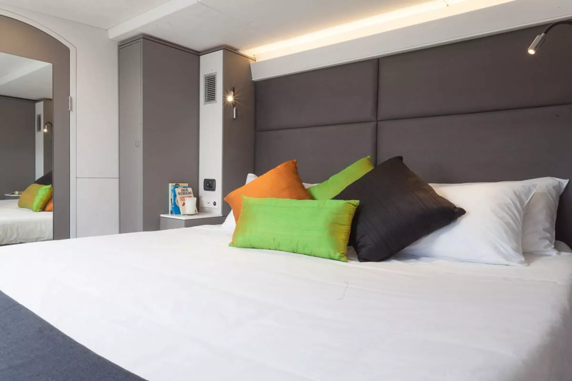 5 spacious guest cabins each with a king berth and an ensuite bath, TV and individualy controlled air-conditioning units.