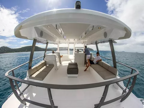 Informal (no dining table) covered flybridge: for BBQ lunches and happy hour hors d'oeuvres.