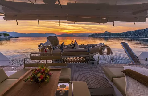 S/Y FLO is a Lagoon 52 - 2018 built. She is the perfect yacht to enjoy your summer vacation. She has three seating areas (front, aft and flybridge). Her bathing platform is idea for lounging and enjoying cocktails. She has four queen bed cabins all with private facilities. She boosts an array of water toys for fun on the sea. Her chef will prepare your delicious meals.