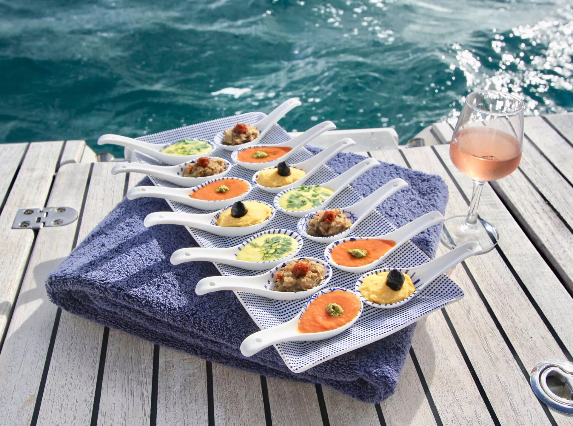 The crew provides a gourmet culinary experience on board Isolablue with fine foods surrounded by the beauty of the Grenadine islands. They can adapt to most diets (gluten free, diary free, vegetarian, vegan…. ) Please request the flyer on Gourmet Charters for further information.