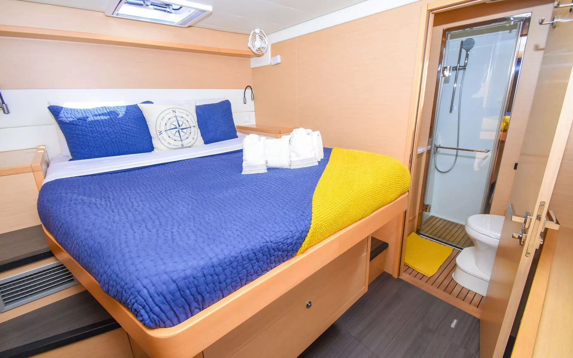 Oui Cherie houses 3 extra-spacious queen staterooms- including a stunning Master and VIP cabin. All guest cabins include their own private ensuite head and stand alone shower. This yacht offers extraordinary space for its size both above and below deck and is suitable for any variety of people desiring to get away: families, friends, coworkers, children, couples- you name it!