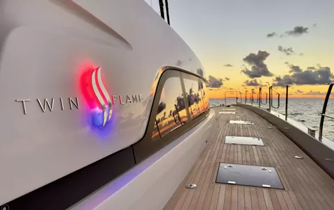 Twin Flame 77 has luxury accommodations for eight guests in a master stateroom with seating area. There are 3 additional queen cabins that are elegantly appointed. For additional flexibility, one cabin can be converted from a queen bed into 2 individual berths.
