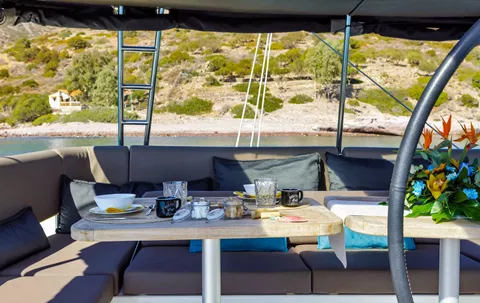 Her creative flair shines through in every meal she prepares, from delectable Greek specialties to gourmet delights that cater to every palate. As both a skilled cook and a charming hostess, Lia ensures that guests aboard the Elvira 52 are treated to a culinary journey that is as unforgettable as the stunning views that surround them. Join Lia on a gastronomic adventure at sea, where every bite is a taste of perfection and every moment is filled with joy and delight. She speaks fluent English and Italian.