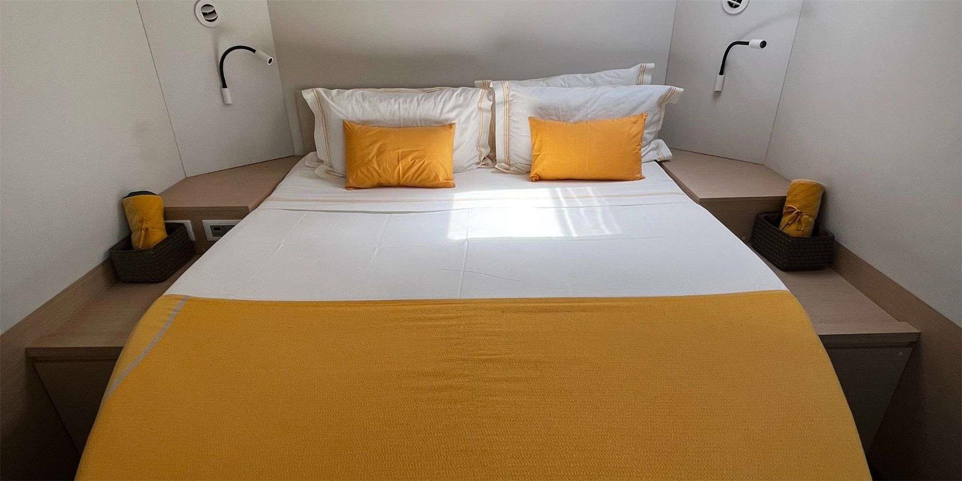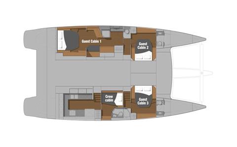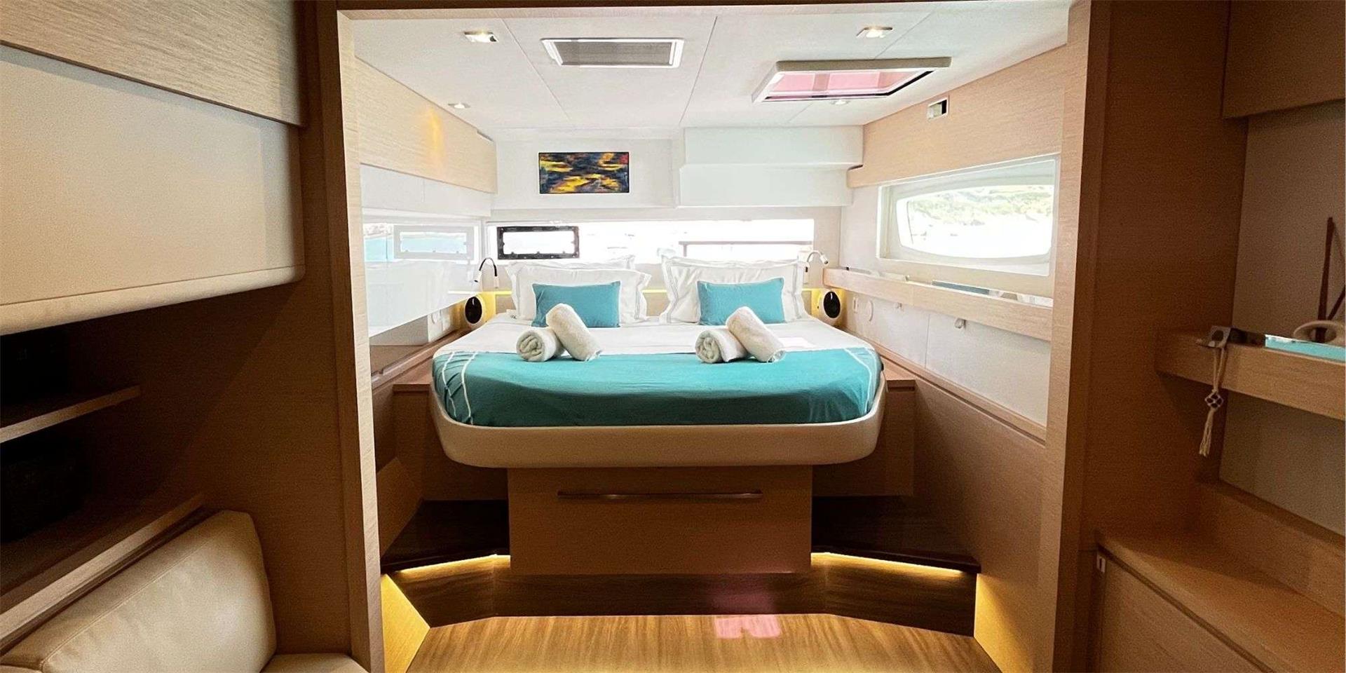 Designed to comfortably share simple day trips or long-haul cruises with family or friends, the flagship catamaran Ipanema 58 features a myriad of decadent and spacious areas in which to relax. Host long lazy lunches in the stunning 25m2 cockpit that comfortably accommodates the largest group of guests, and then unwind on the inspired modular sunbathing deck on the catamaran’s expansive foredeck.