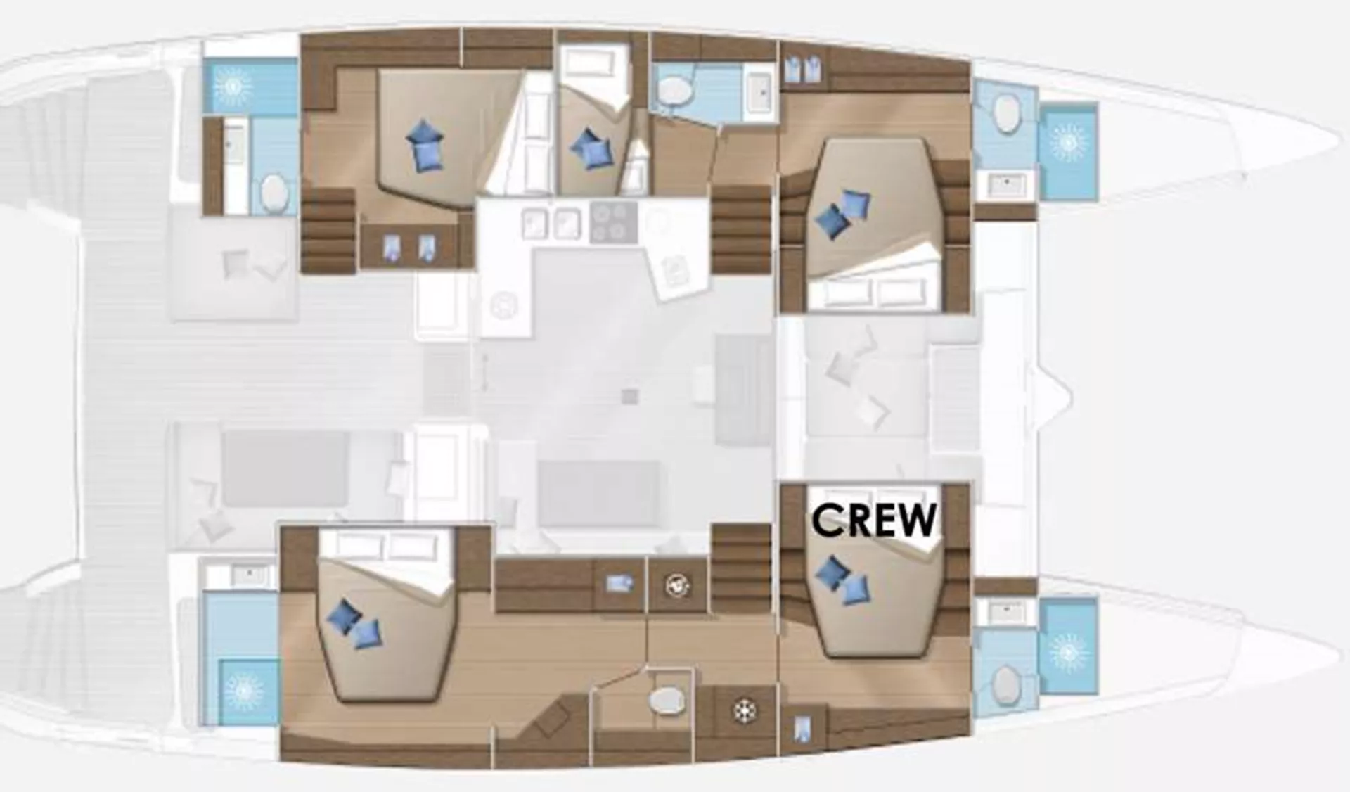 This newly designed 52’ Performance Luxury Model Lagoon is appointed with Beautiful Modern Comforts and Capabilities reflected in her “5 Private Bedroom Staterooms & 5 Private Bathroom Floorplan”. Whether you’re traveling with a group of friends, family, or just want to have her to yourself, she will accommodate! The Possibilities are Endless on “Grace”.