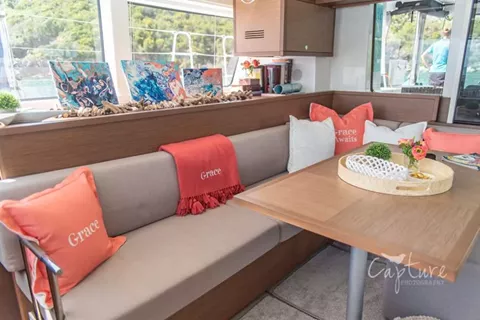 “GRACE” is a brand new 2020 Lagoon 520 debuting at the St. Thomas Boat Show in Fall 2019, and is available for charter in the Virgin Islands upon splash down in November 2019.