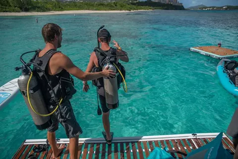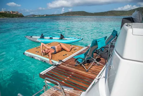 For our underwater adventure seekers, Karma is fully equipped with scuba diving and snorkeling equipment, and a hydraulic swim platform for easy access in and out of the water. Above the water, paddle along on our SUPs or our two person kayak, or take a load off on the floating dock Lily Pad.