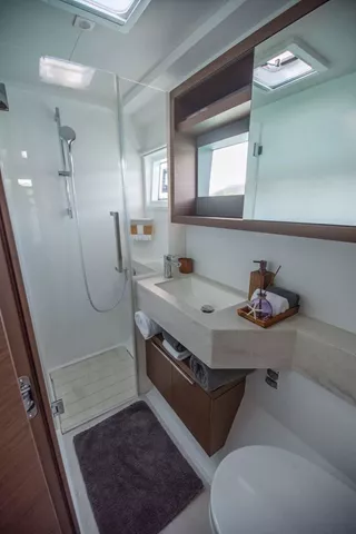 Welcome to S/Y Karma, an award winning Lagoon 50 and home of your next amazing sailing vacation. Offering the highest levels of luxury, comfort, and extravagance, this cruising catamaran is the perfect yacht for your friends and family. Karma offers multiple social areas including the flybridge with 360 degree ocean views, the spacious cockpit and salon with easy interior and exterior access, and the foredeck lounge where you can bask in the Caribbean sun.