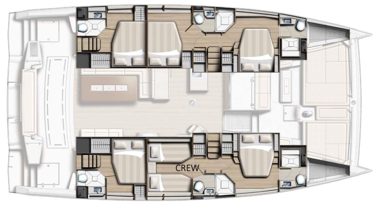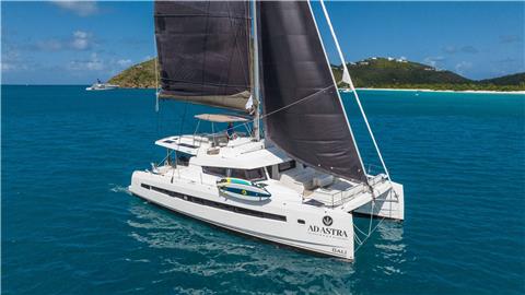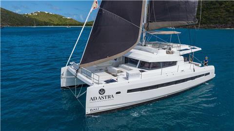 Ad Astra will accommodate 10 charter guests in 5 spacious queen cabins. She is a 2020 sailing catamaran with black sails, eight extra powerful underwater lights, 60hp outboard dingy, flexiteak on both the aft and front of the yacht, solar panels, air conditioning, water maker, ice maker, full sized refrigerator, a fully customizable menu, ecofriendly and reef safe toiletries, a bar stocked to guest preference, coffee/espresso machine, rendezvous scuba diving, snorkeling gear, underwater scooters, wakeboard, stand up paddle board, ski tube, 10 ft. floating dock, pool noodles, fishing gear, board and card games, television in the salon, Fusion 3 Bluetooth enabled sound system and Ad Astra giveaways.