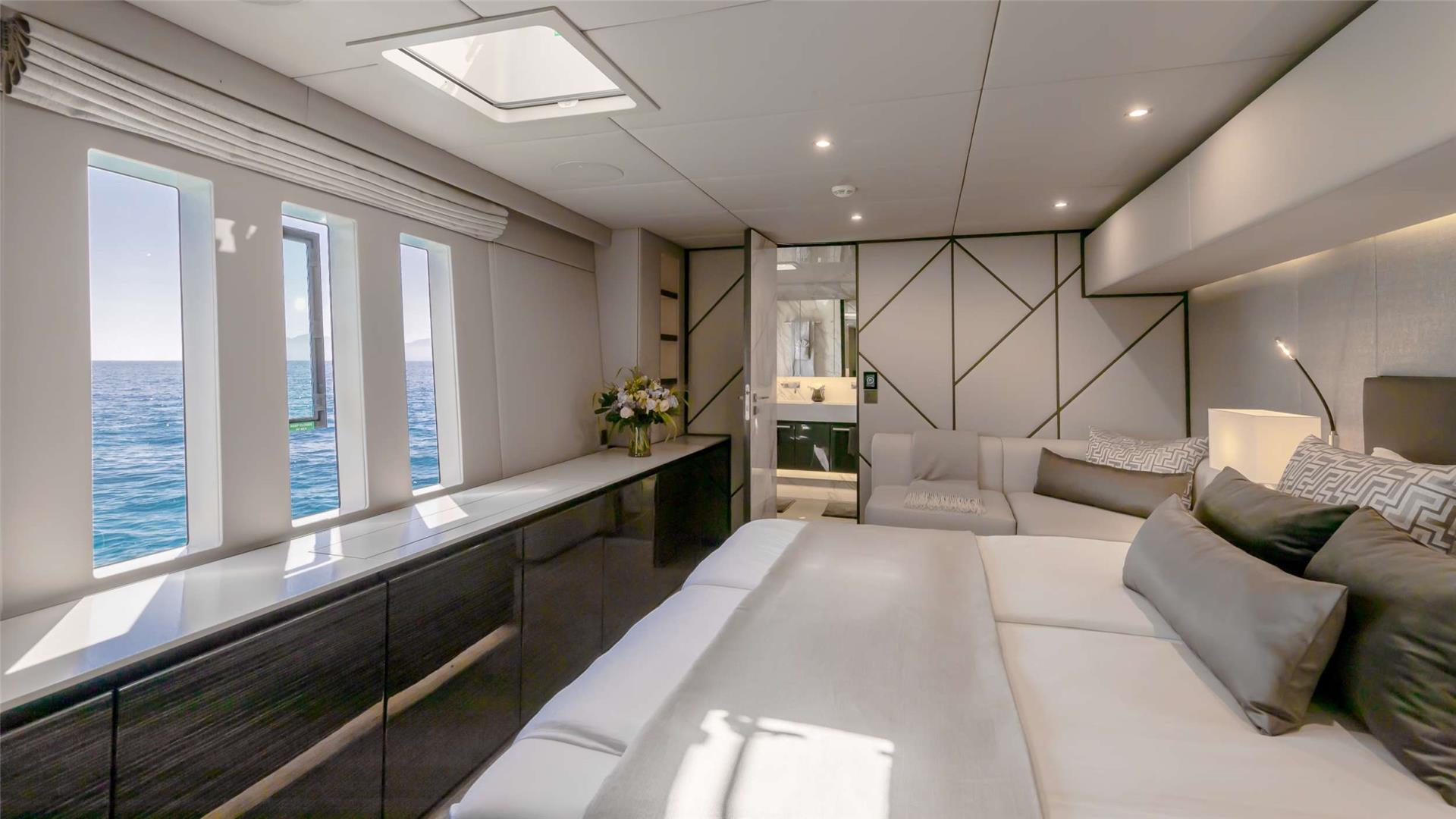 Endless Horizon features four elegantly furnished cabins for guests. The main cabin is a luxurious retreat, complete with a king-sized bed, an expansive bathroom, a snug sofa, and ample closet space.