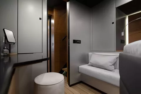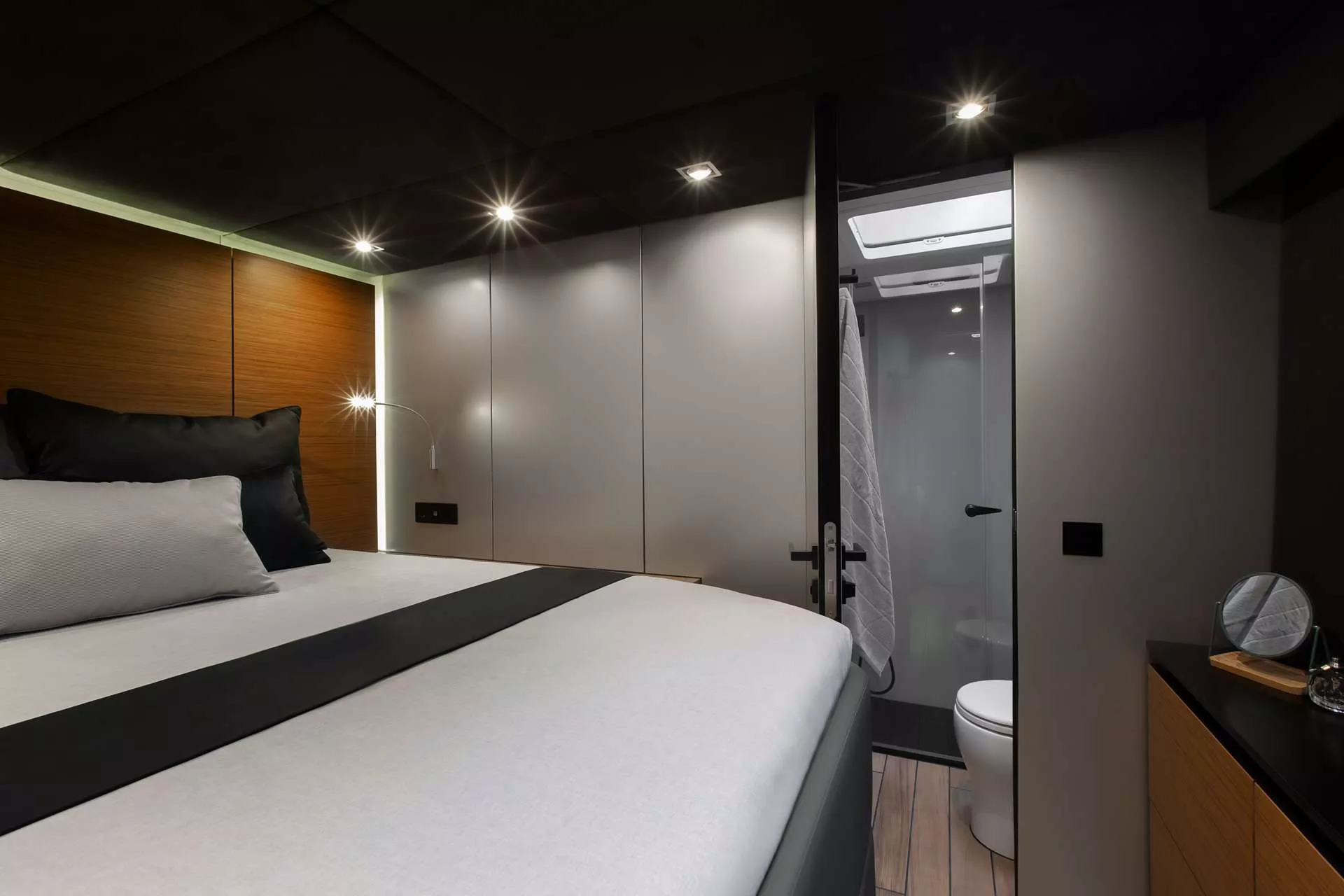 CALMA’s layout features five exclusive double ensuite cabins for ten guests, a stylish saloon with cosy lounging and dining areas, and a functional galley up, giving the chance to watch a professional chef in action.